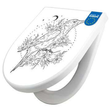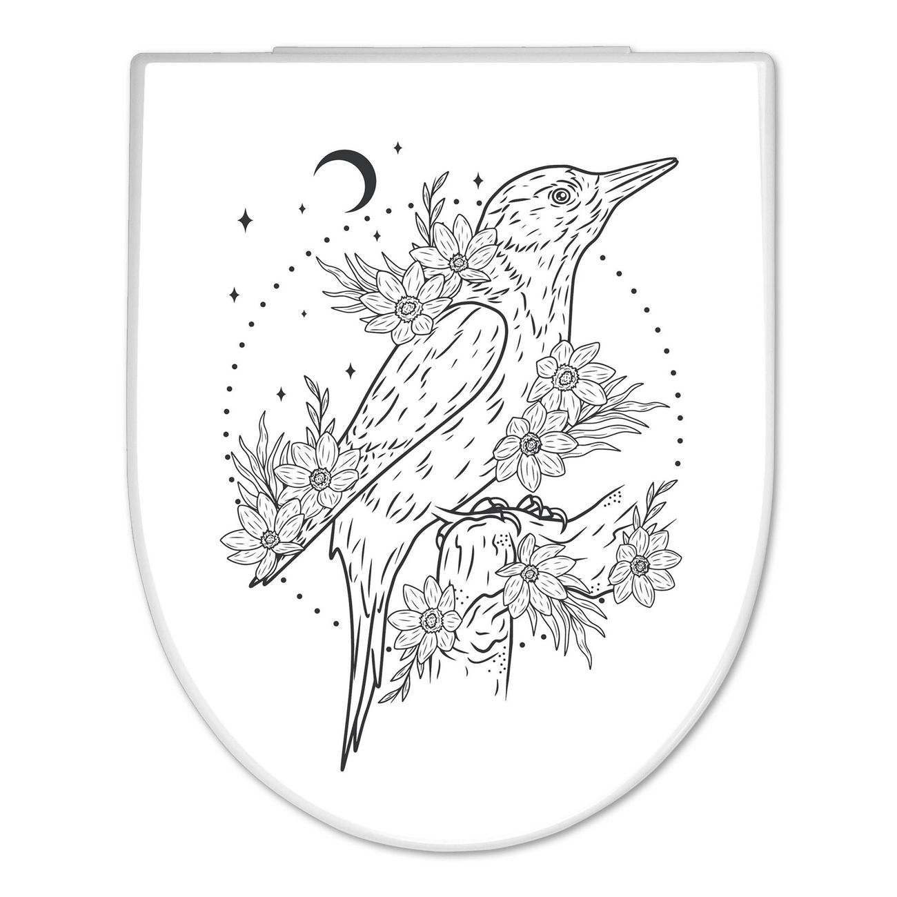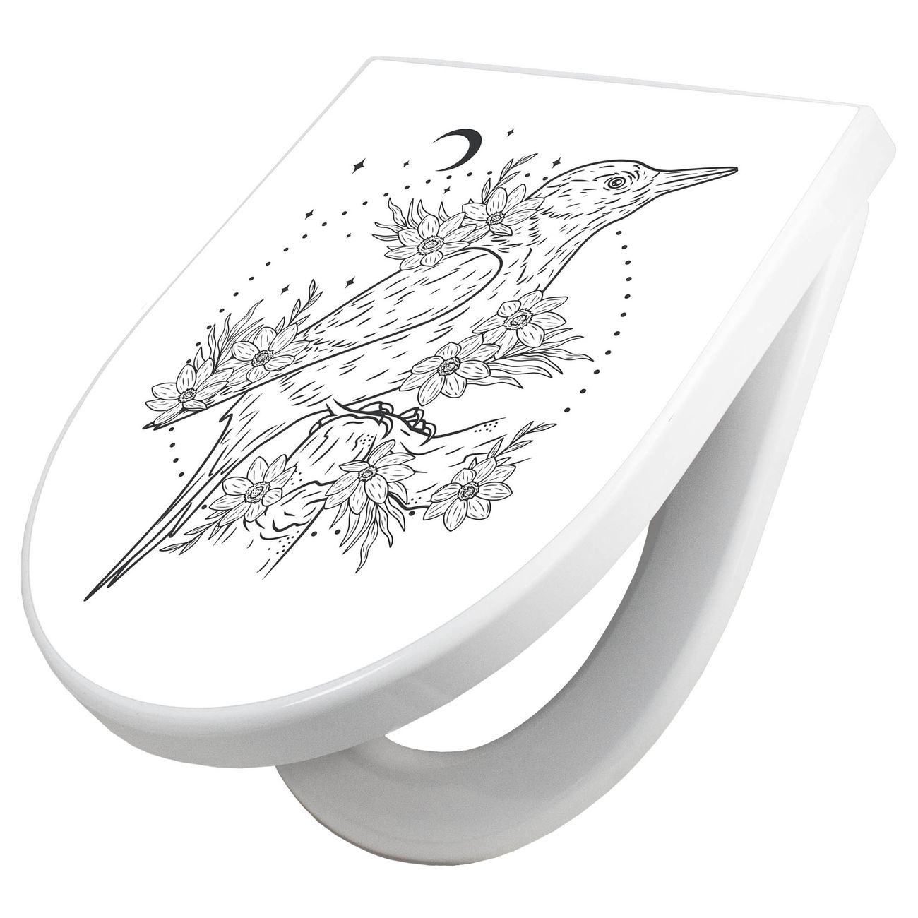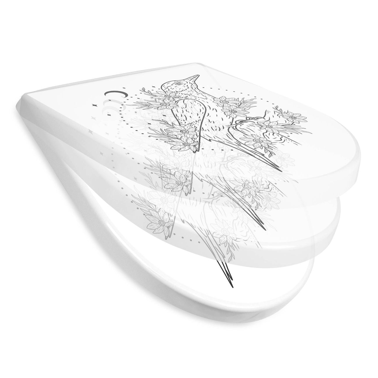 WC Sitz mit Absenkautomatik D Form Motiv Vogel und Blumen im Mondlicht
