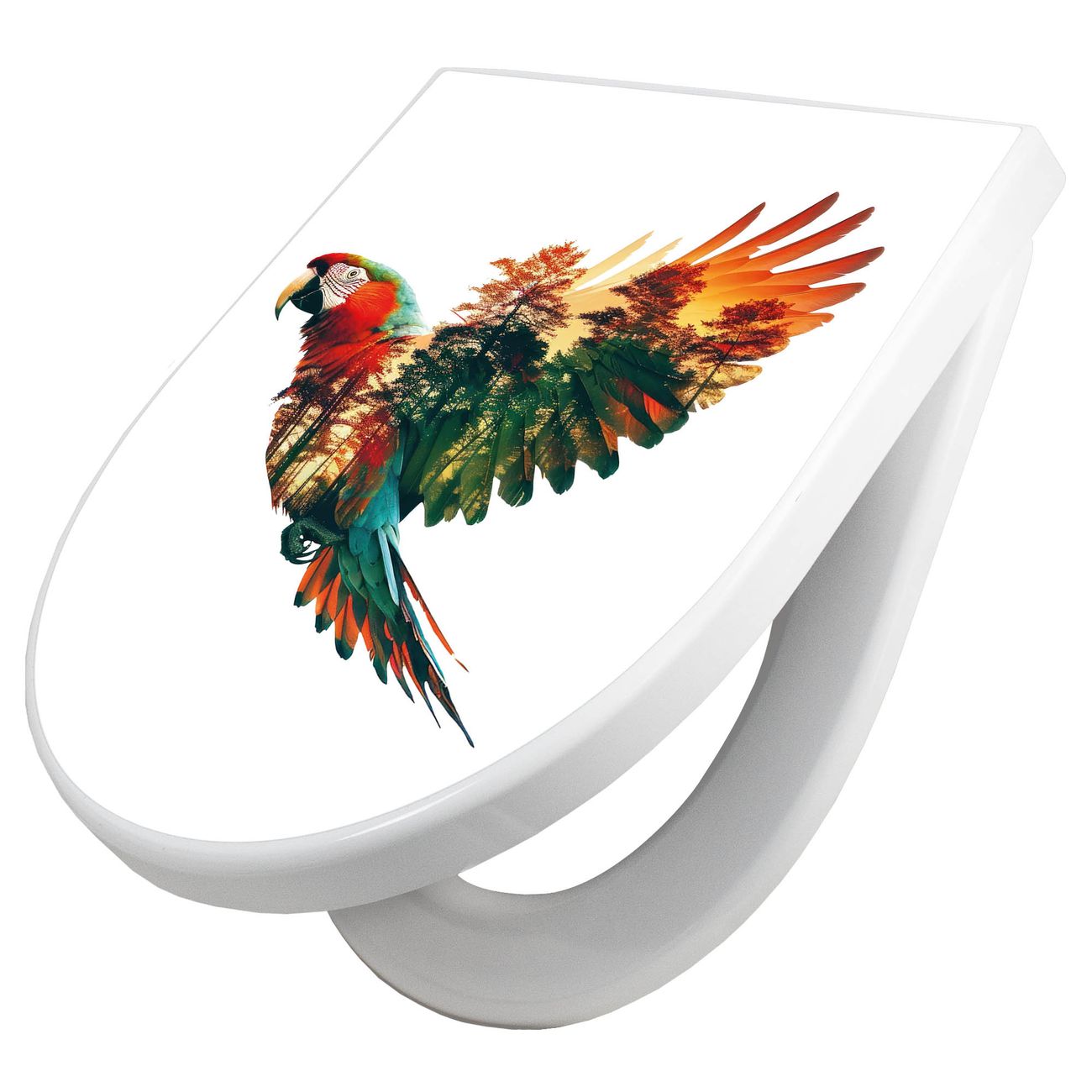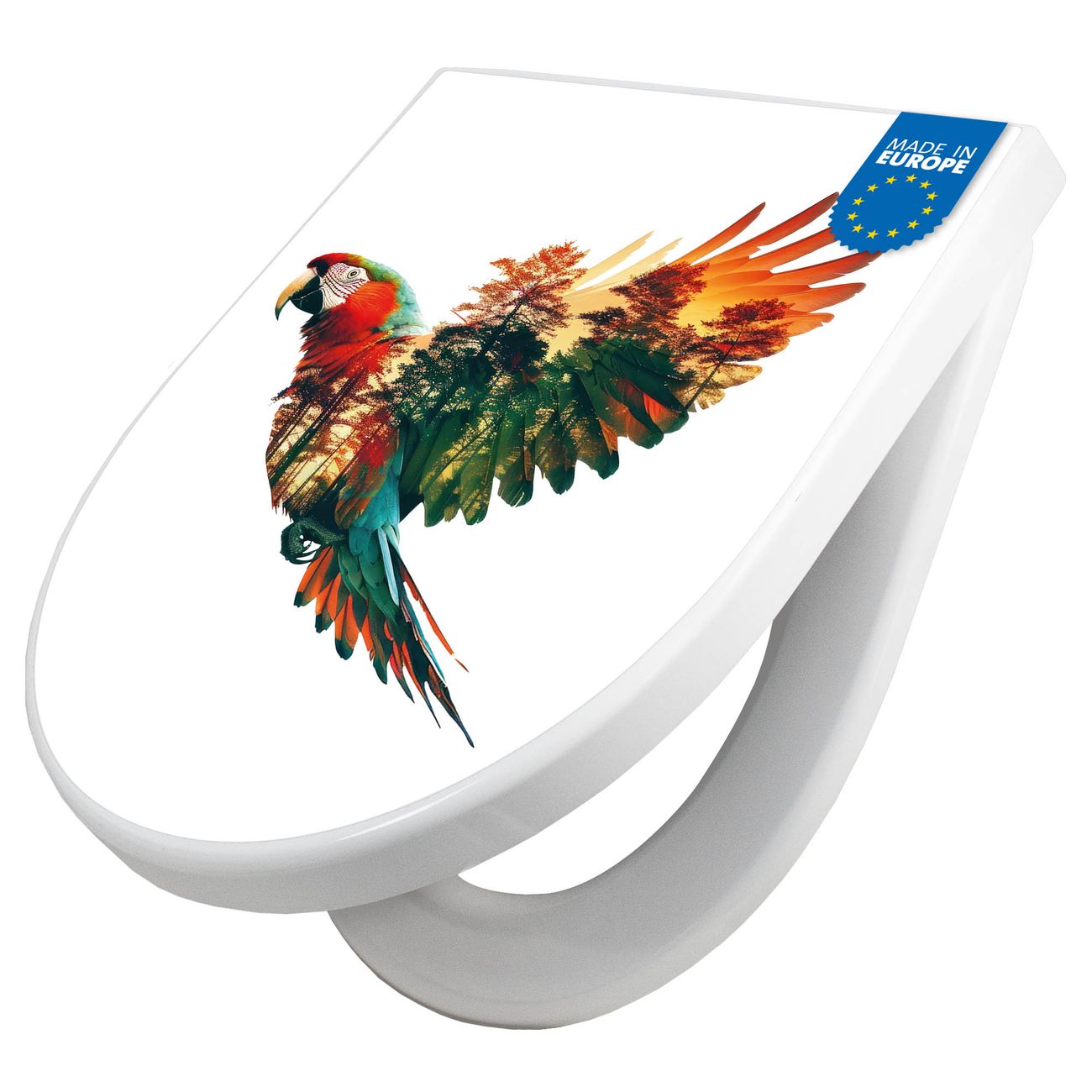 WC Sitz mit Absenkautomatik D Form Motiv Wald und Vogel Silhouette