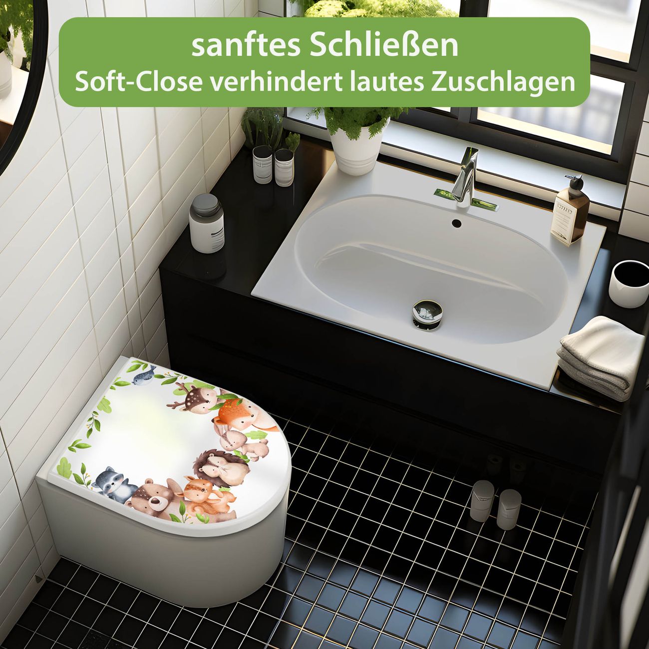 WC Sitz mit Absenkautomatik D Form Motiv Waldtier Freunde 2