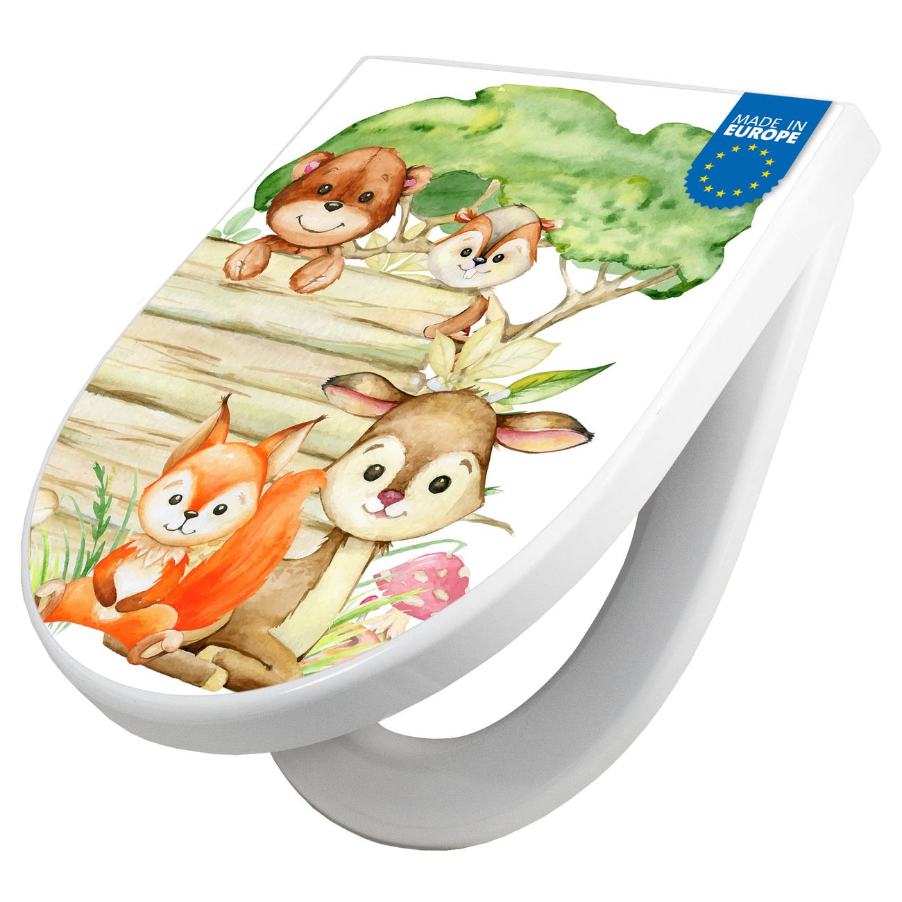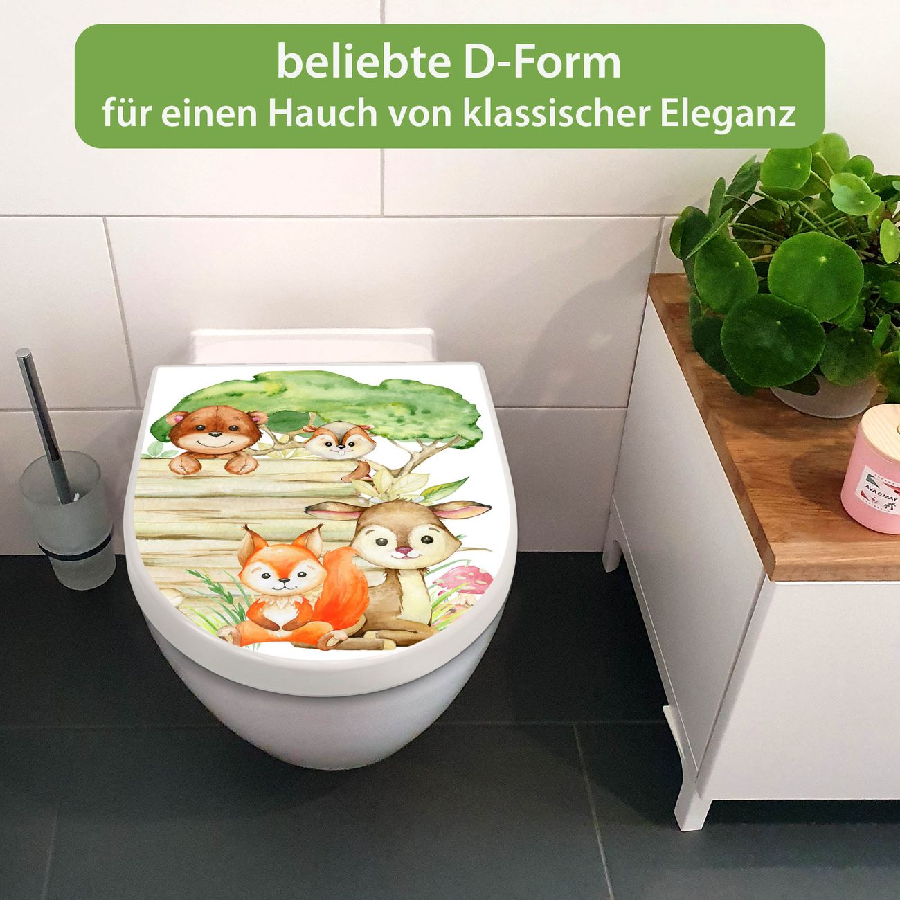 WC Sitz mit Absenkautomatik D Form Motiv Waldtiere Abenteuer