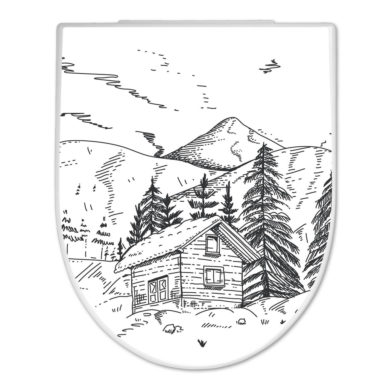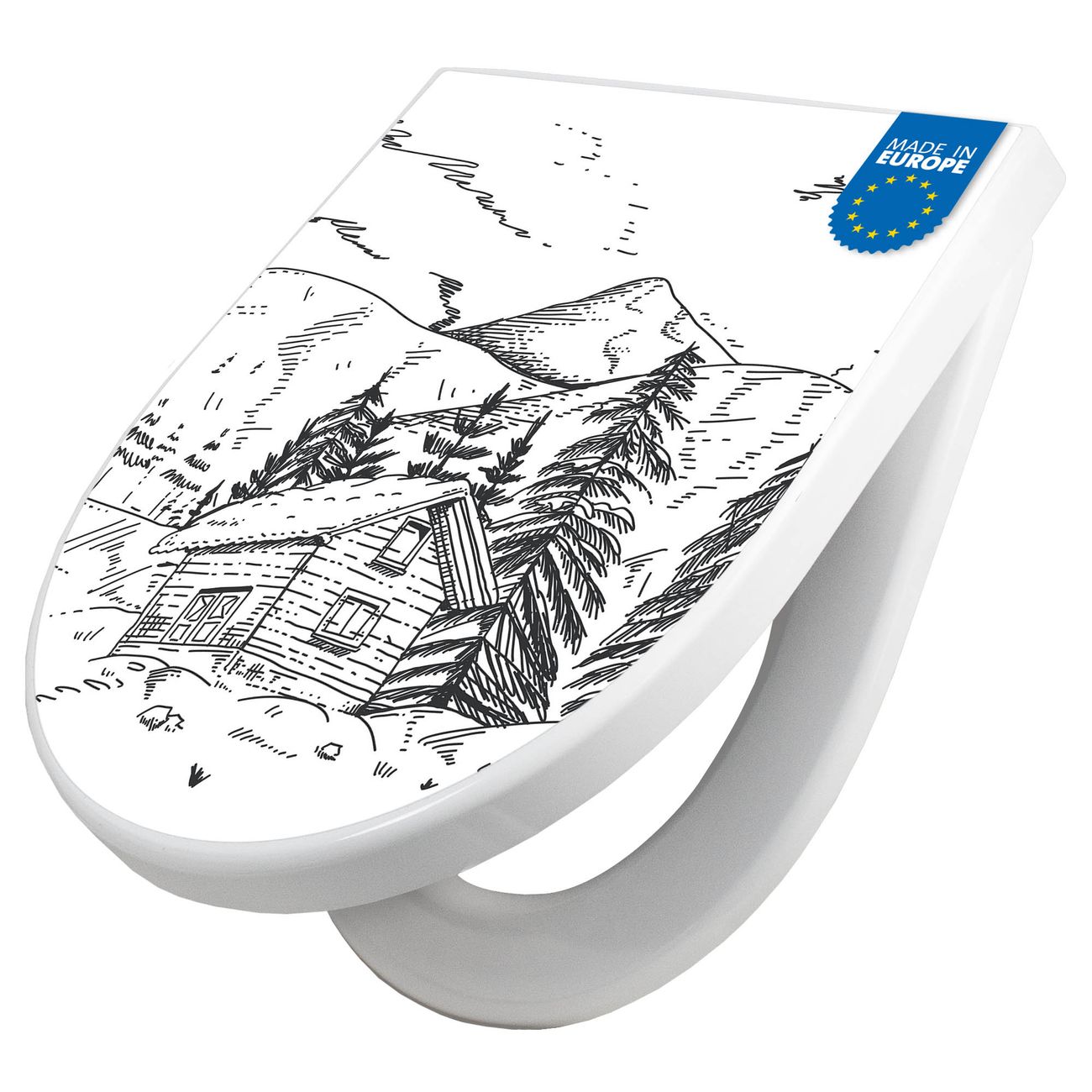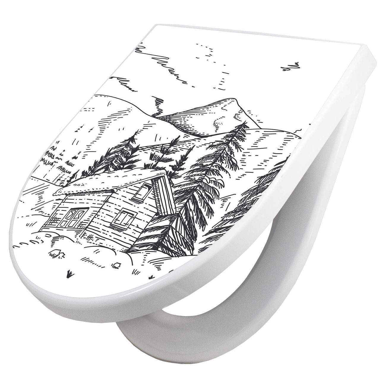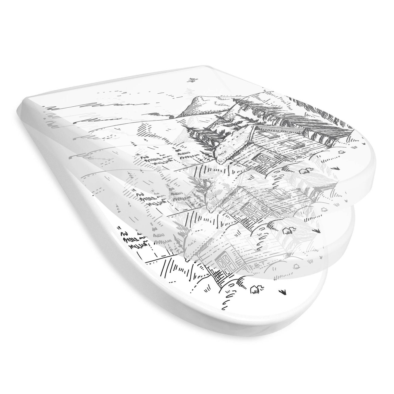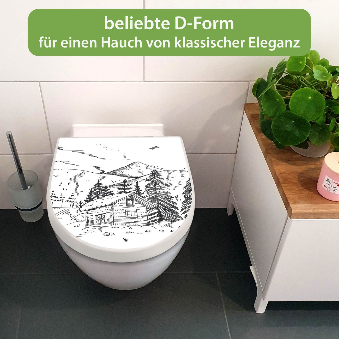 WC Sitz mit Absenkautomatik D Form Motiv Winterliche Berghüttenidylle