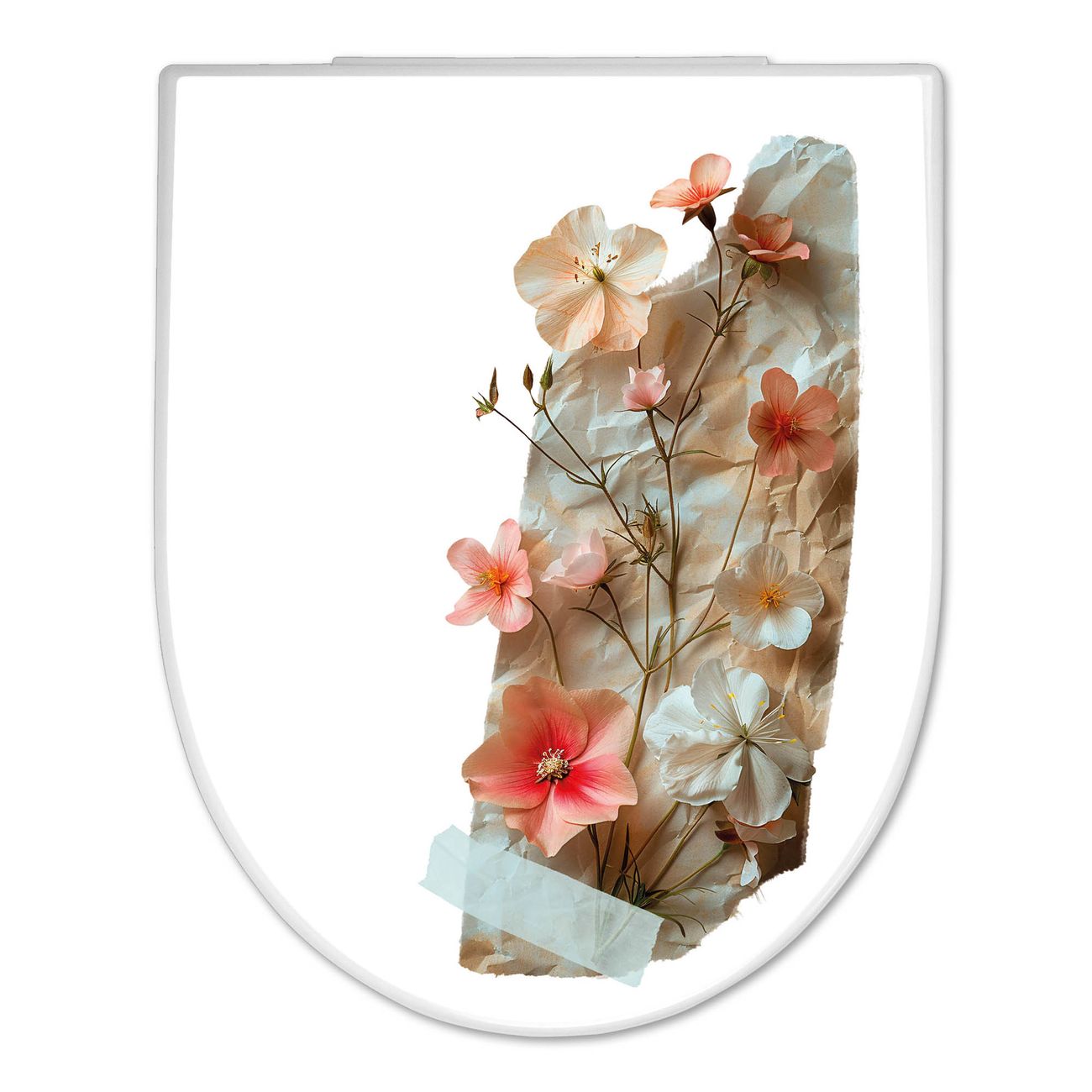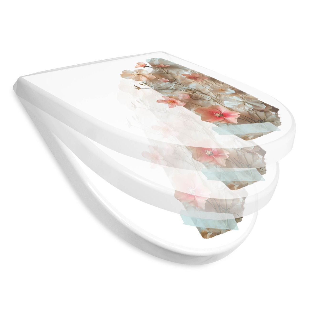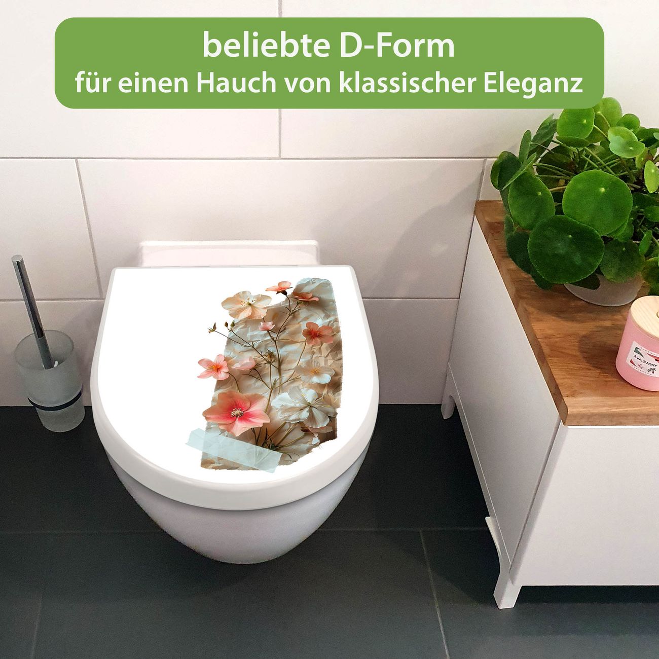 WC Sitz mit Absenkautomatik D Form Motiv Zarte Blütenkomposition Vintage
