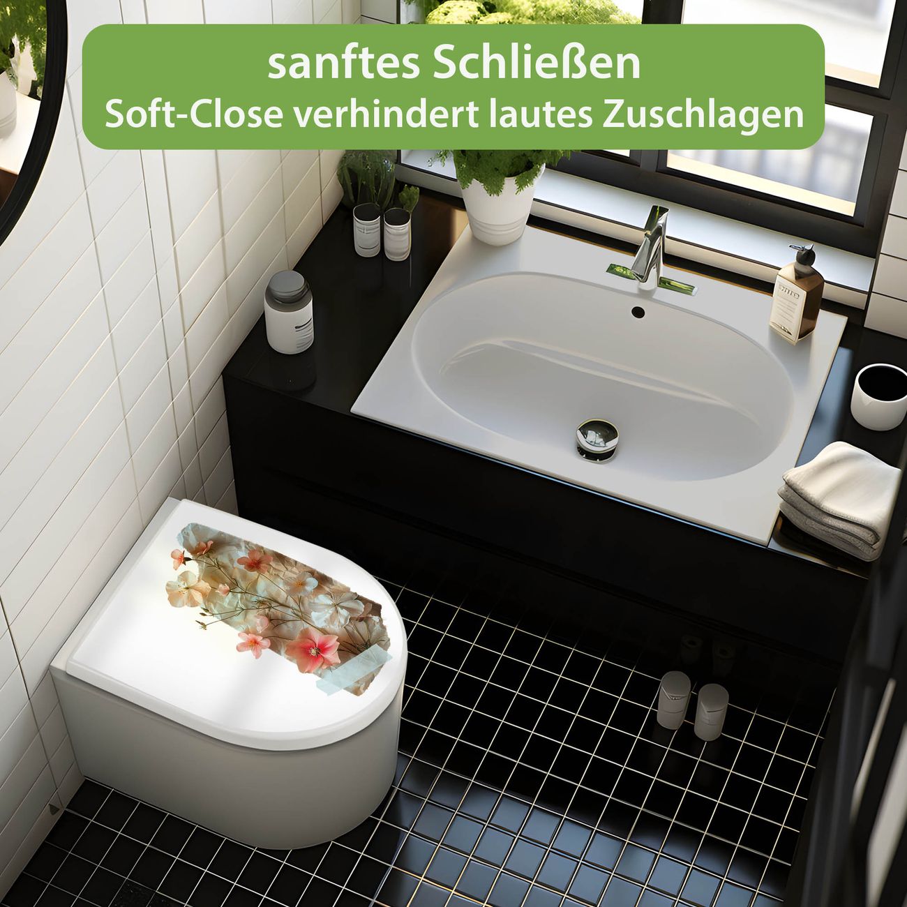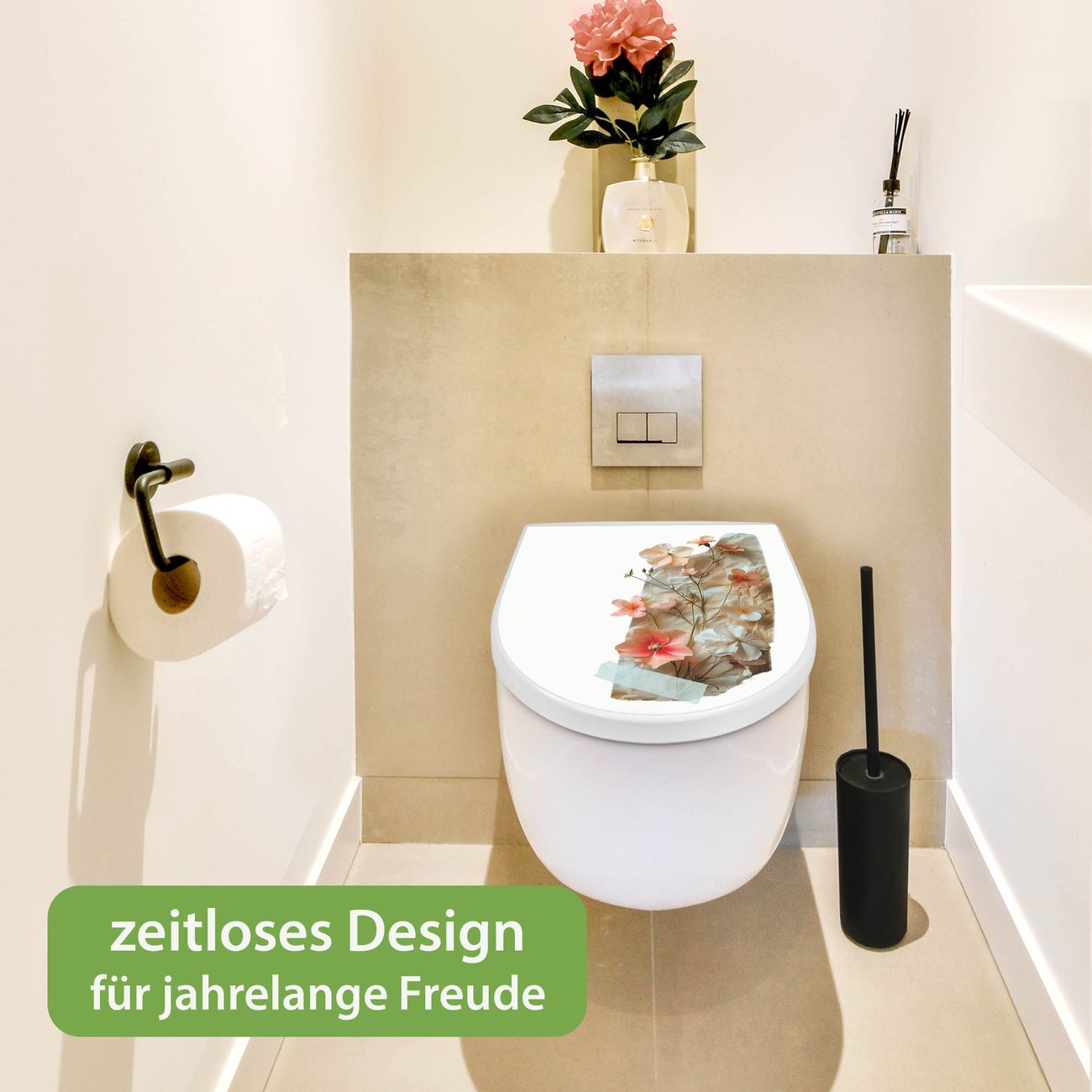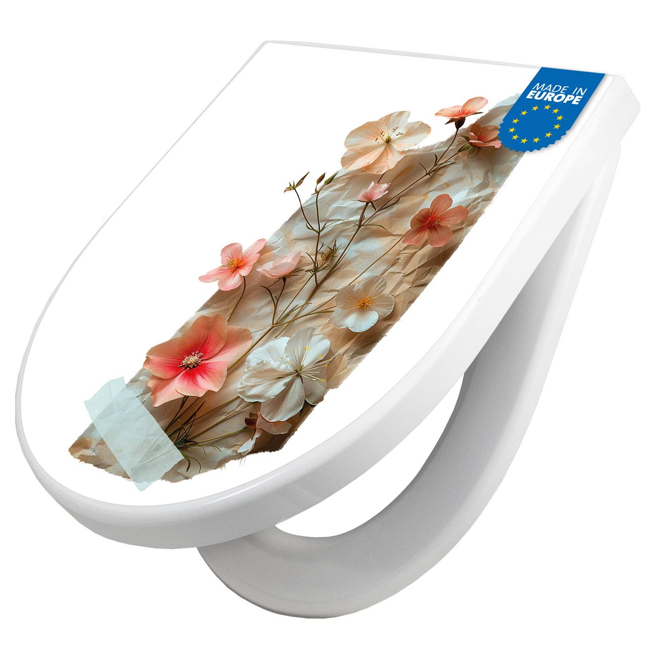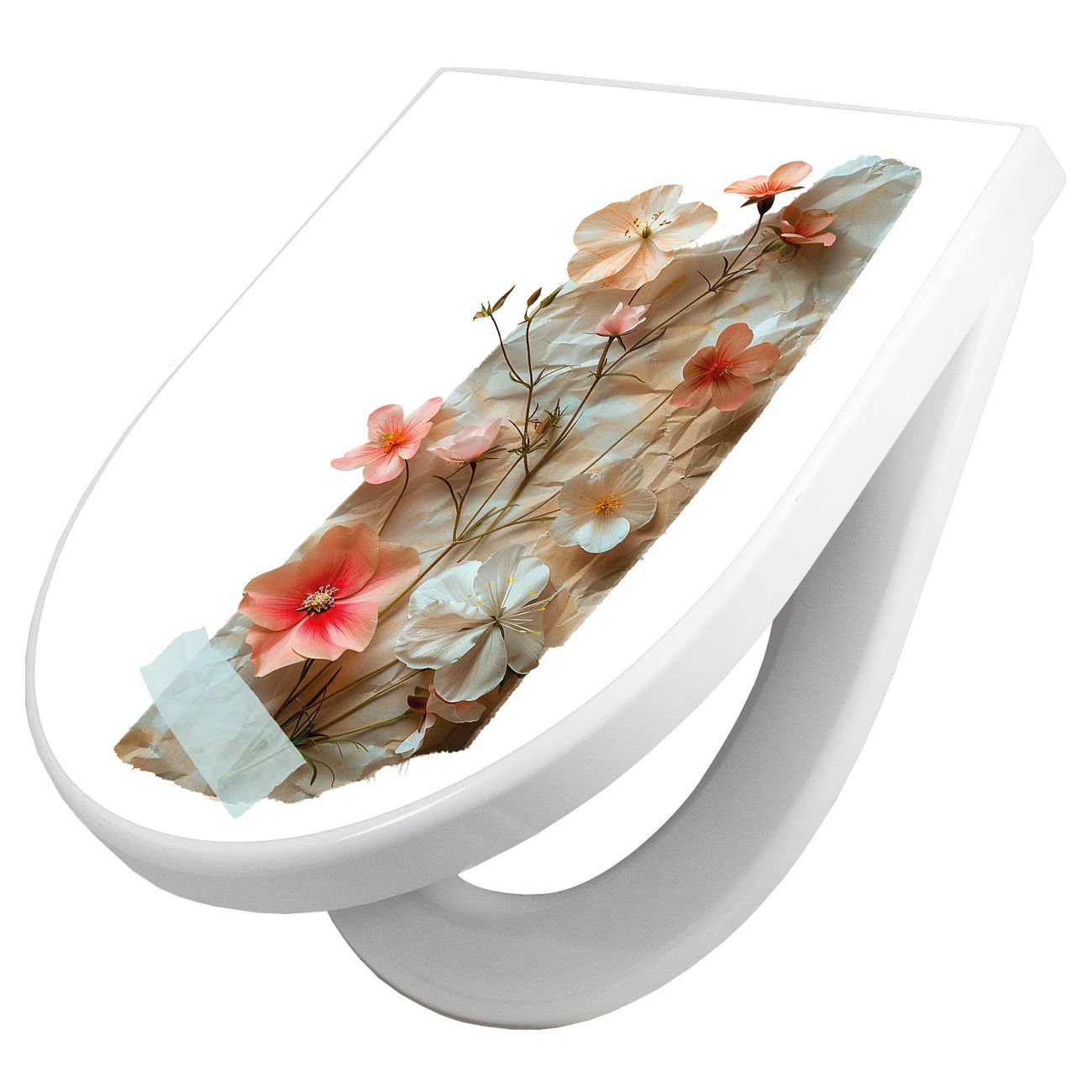 WC Sitz mit Absenkautomatik D Form Motiv Zarte Blütenkomposition Vintage
