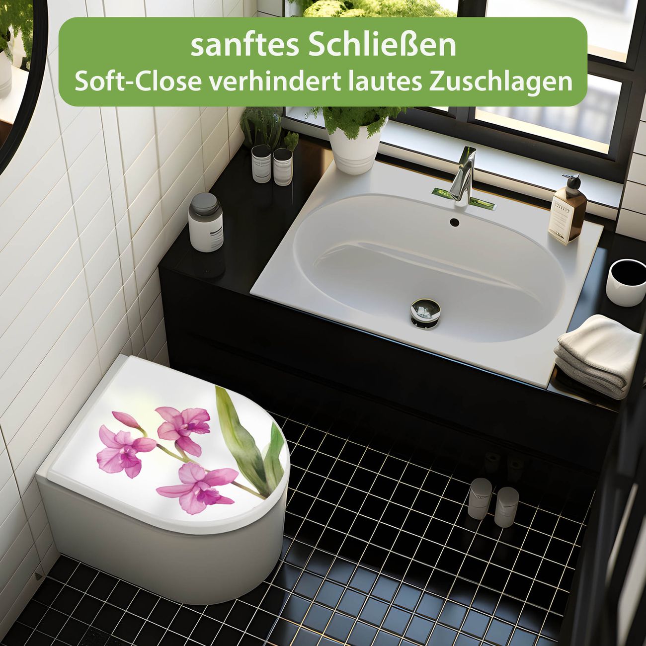 WC Sitz mit Absenkautomatik D Form Motiv Zarte Orchidee