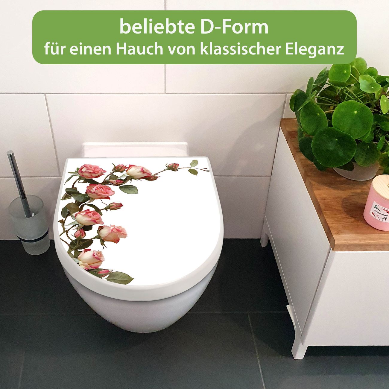 WC Sitz mit Absenkautomatik D Form Motiv Zarte Rosenranken