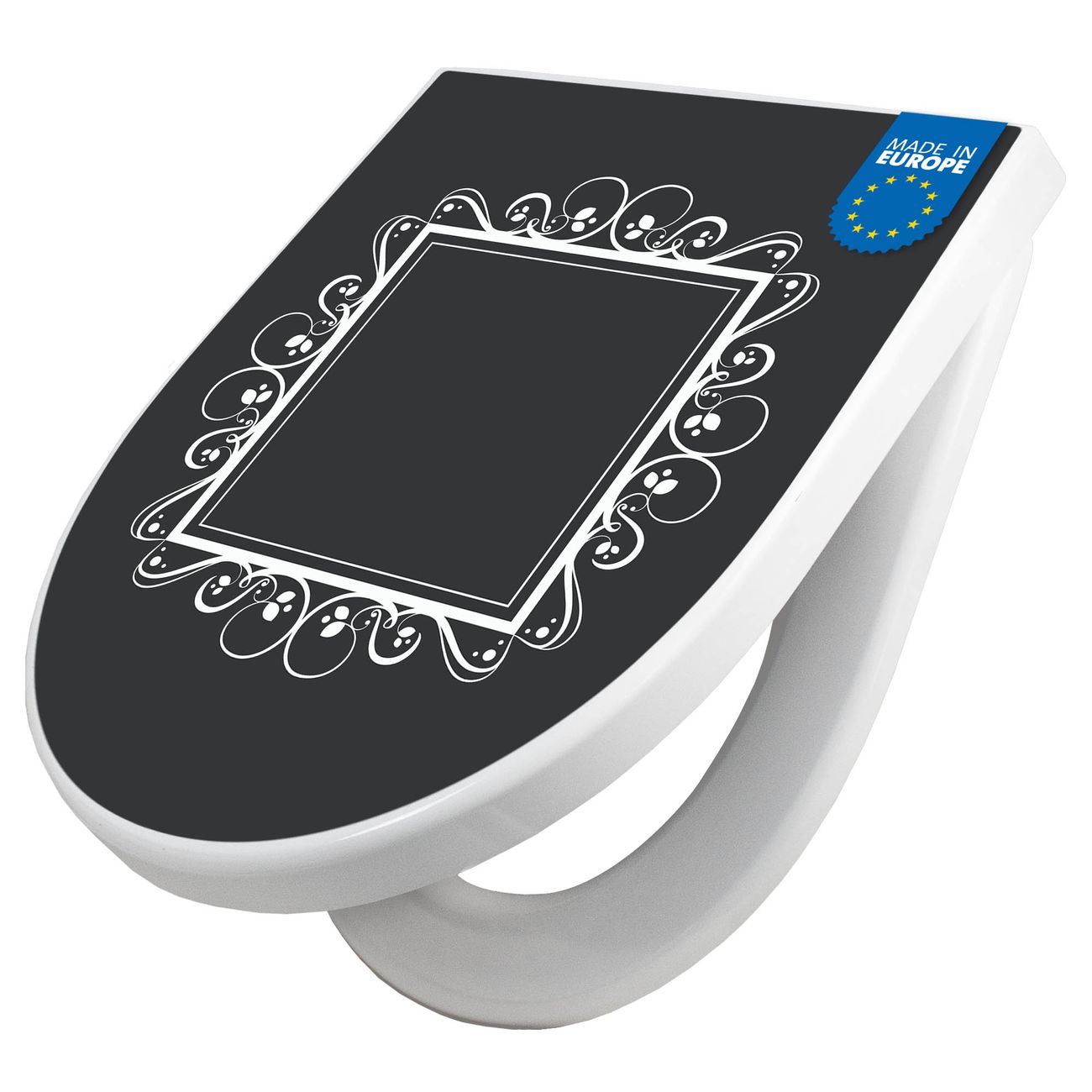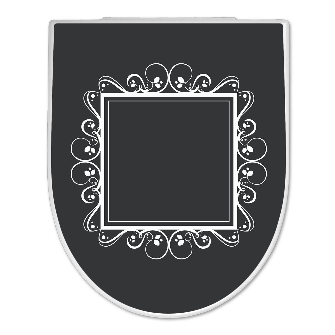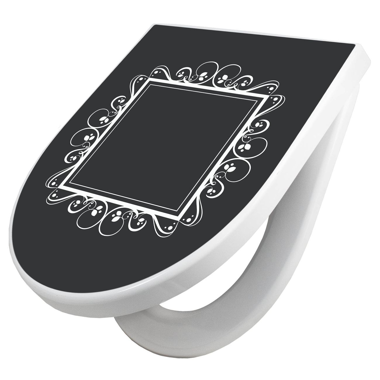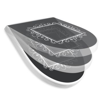 WC Sitz mit Absenkautomatik D Form Motiv Zierrahmen Grau-Weiß
