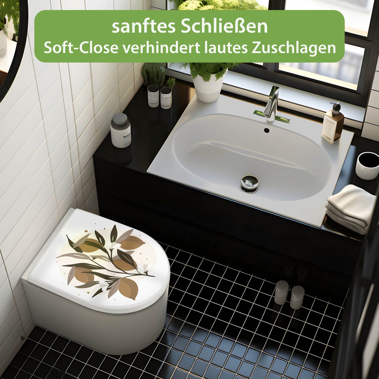 WC Sitz mit Absenkautomatik D Form Motiv Zitronenzweig Illustration