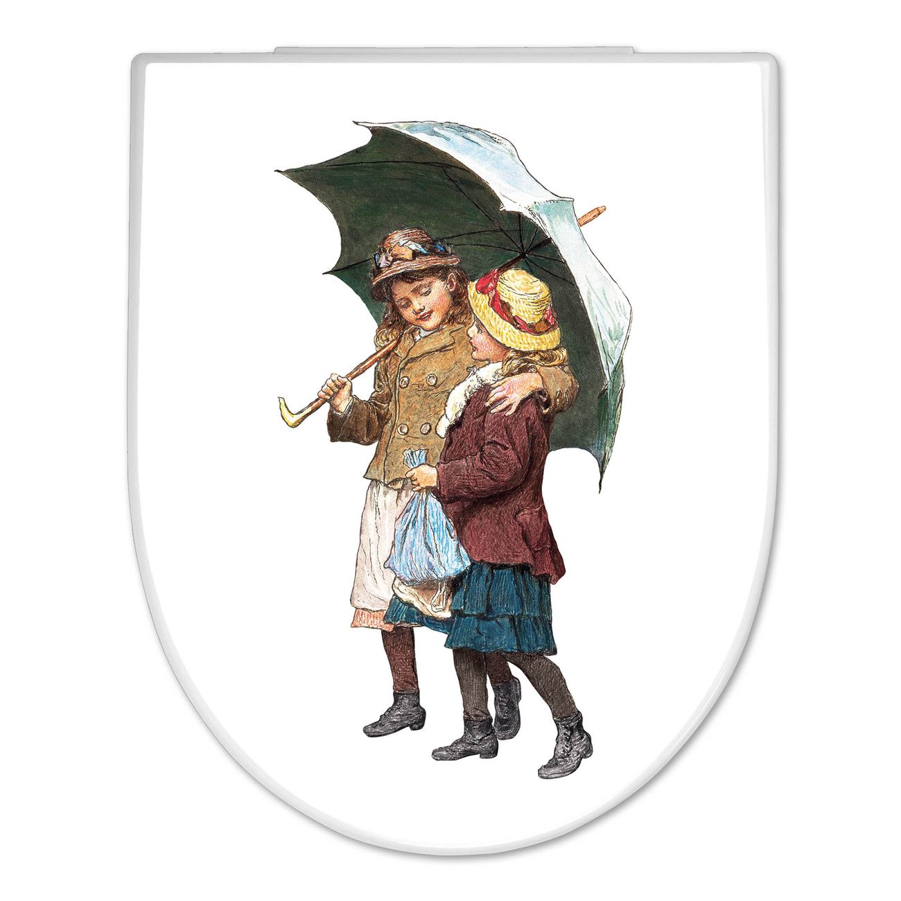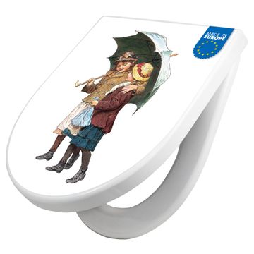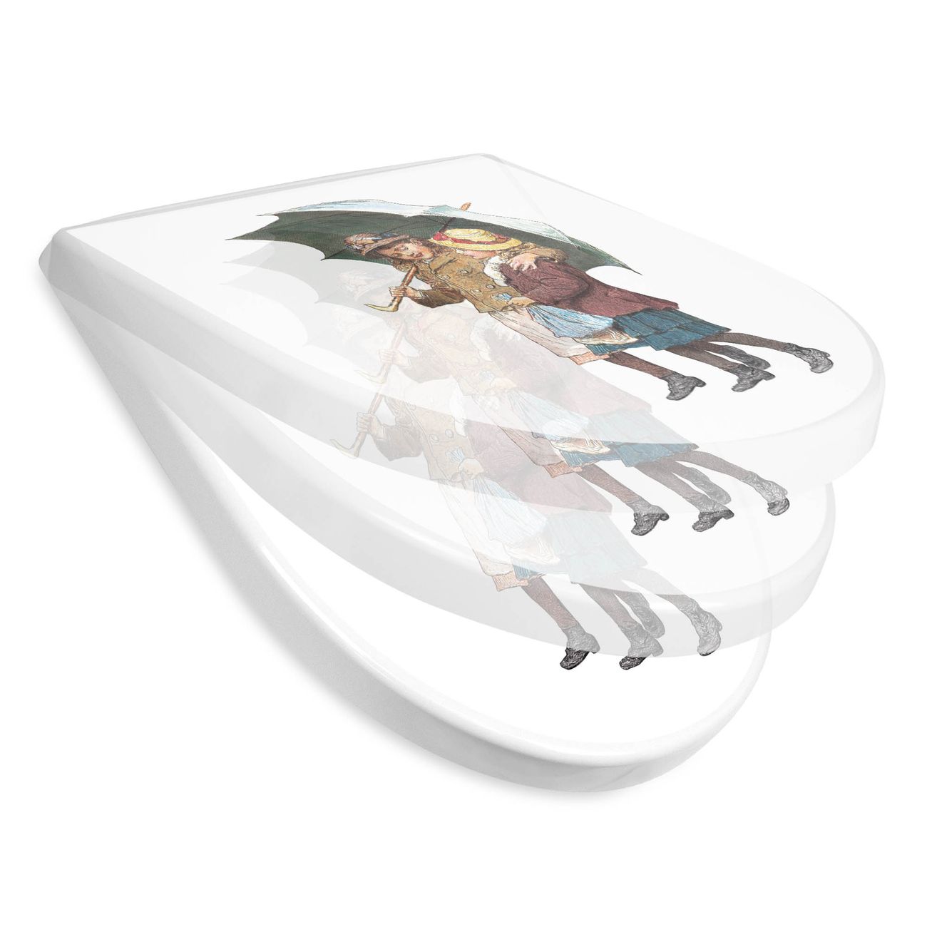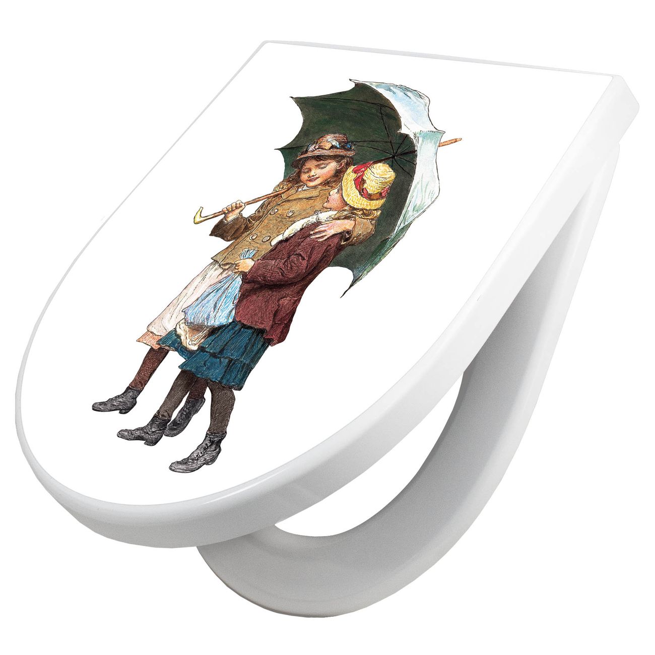 WC Sitz mit Absenkautomatik D Form Motiv zwei Kinder mit Regenschirm Vintage