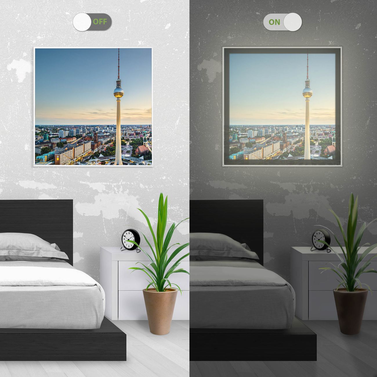 - Aussehen: Tags ein Wandbild, Nachts eine Lampe