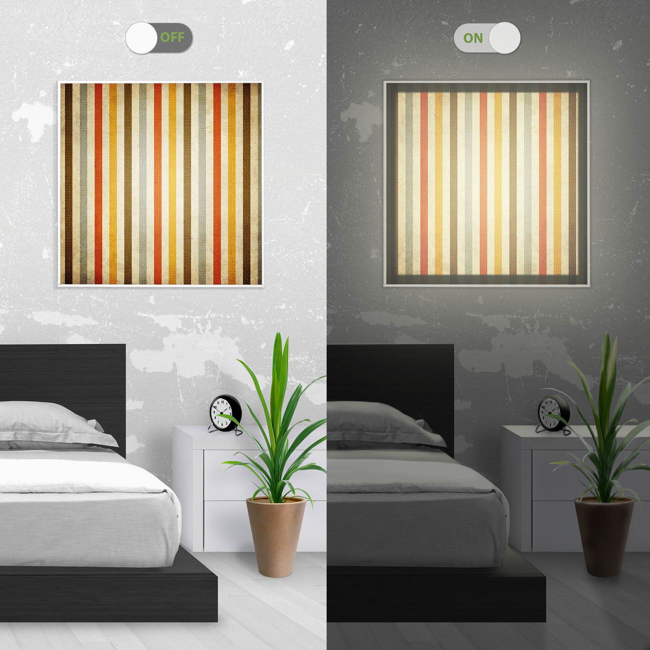 Im eingeschalteten Zustand wirft das Bild einen Schatten wie in der ersten Ansicht zu sehen.
