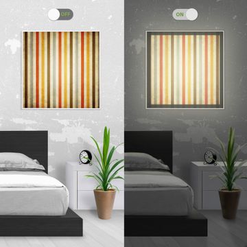 Mit der banjado smarten LED Wandleuchte mit Motiv Alte Streifen schaffen Sie in Ihren Räumen eine besondere Atmosphäre. Abends spendet die Wandlampe Licht und tagsüber haben Sie ein stimmungsvolles Wandbild. Die Leuchte besteht aus einem zeitlosen weißen Rahmen, in den das smarte WLAN LED Paneel sowie das Bild eingefasst wird. Die Montage ist denkbar einfach, Sie erhalten eine detaillierte Aufbauanleitung sowie Montagematerial. Eine angenehme Lichtquelle erhöht nachweislich das Wohlbefinden. Das Motiv der Leuchte lässt sich leicht wechseln, so können Sie Ihre Wohnräume individuell gestalten. Die Montage ist an der Wand oder an der Decke möglich.