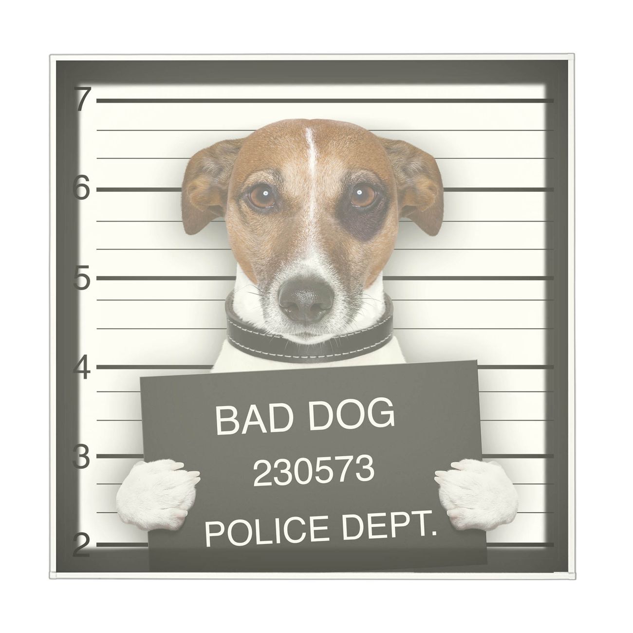 banjado LED Wandleuchte Sie erhalten hier eine stimmungsvolle Lichtquelle bestehend aus dem Set: Smart LED Panel mit Trafo, Motivscheibe (Motiv: Bad Dog Jack Russel) und Rahmen. Der Aufbau ist denkbar einfach, Sie erhalten eine detaillierte Aufbauanleitung. Die komplette Leuchte kann sowohl an der Wand angeschlossen werden als auch als Deckenleuchte. Die Gesamtgröße der Lampe ist 62,5 x 62,5 x 4,5cm (HxBxT). Das Set besteht aus: LED Panel mit Trafo, Rahmen und Motivbild zum Selbstaufbau.