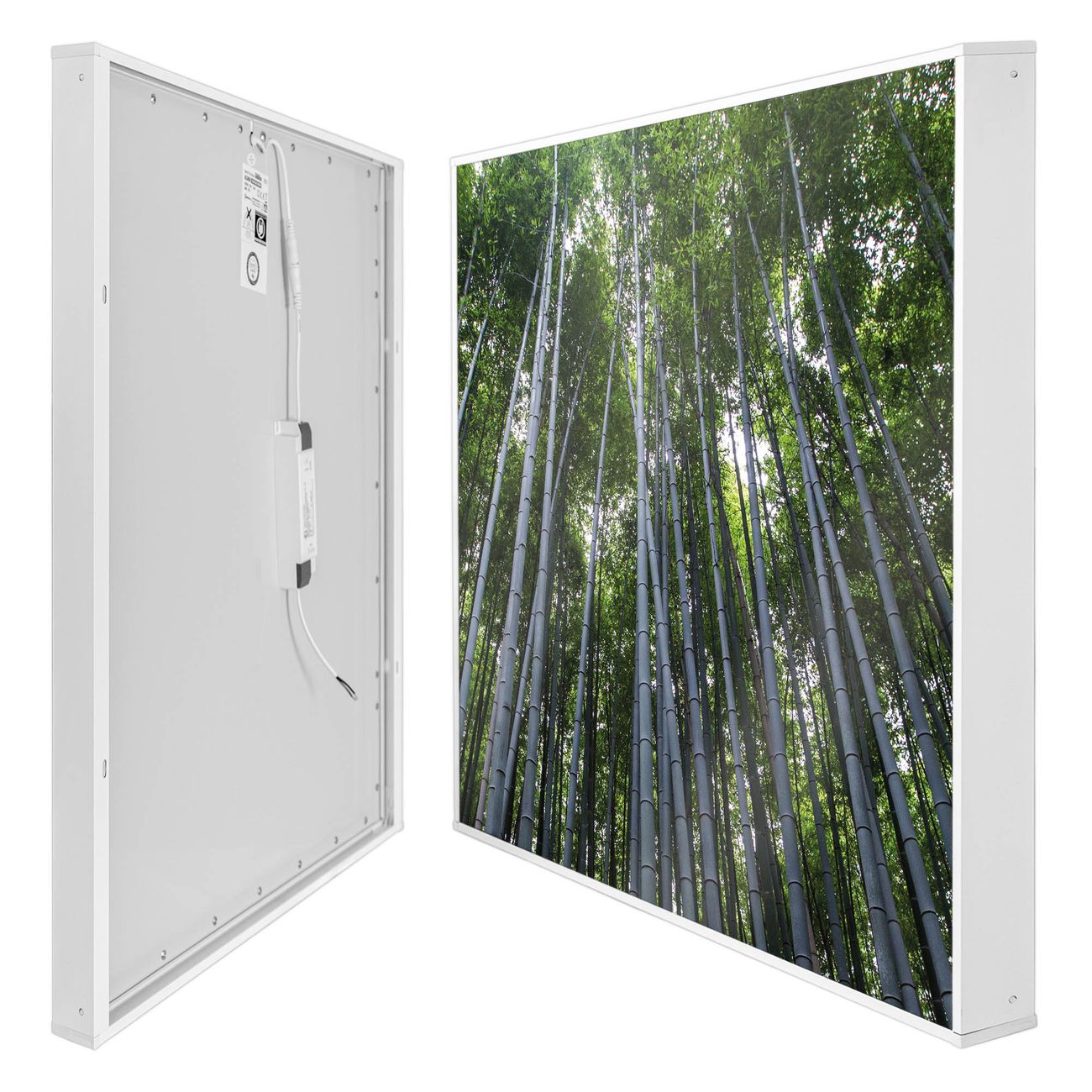 banjado LED Wandleuchte Sie erhalten hier eine stimmungsvolle Lichtquelle bestehend aus dem Set: Smart LED Panel mit Trafo, Motivscheibe (Motiv: Bambuswald) und Rahmen. Der Aufbau ist denkbar einfach, Sie erhalten eine detaillierte Aufbauanleitung. Die komplette Leuchte kann sowohl an der Wand angeschlossen werden als auch als Deckenleuchte. Die Gesamtgröße der Lampe ist 62,5 x 62,5 x 4,5cm (HxBxT). Das Set besteht aus: LED Panel mit Trafo, Rahmen und Motivbild zum Selbstaufbau.
