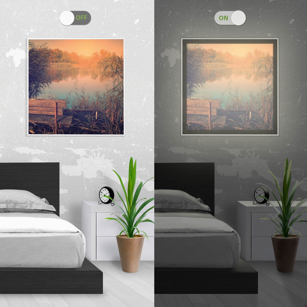 - Aussehen: Tags ein Wandbild, Nachts eine Lampe