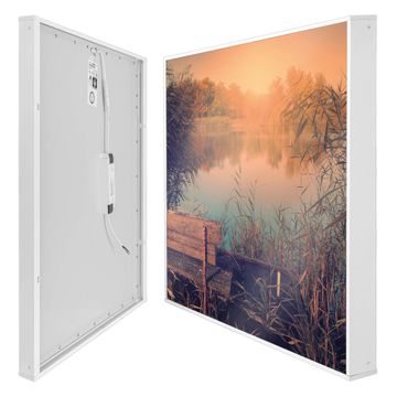 banjado LED Wandleuchte Sie erhalten hier eine stimmungsvolle Lichtquelle bestehend aus dem Set: Smart LED Panel mit Trafo, Motivscheibe (Motiv: Bank Am See) und Rahmen. Der Aufbau ist denkbar einfach, Sie erhalten eine detaillierte Aufbauanleitung. Die komplette Leuchte kann sowohl an der Wand angeschlossen werden als auch als Deckenleuchte. Die Gesamtgröße der Lampe ist 62,5 x 62,5 x 4,5cm (HxBxT). Das Set besteht aus: LED Panel mit Trafo, Rahmen und Motivbild zum Selbstaufbau.