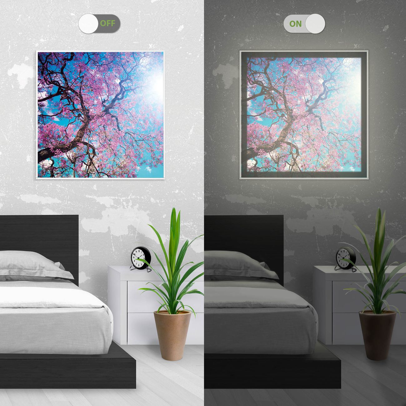 - Aussehen: Tags ein Wandbild, Nachts eine Lampe