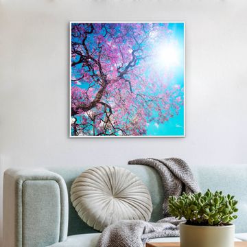 Mit der banjado smarten LED Wandleuchte mit Motiv Baumkrone 2 schaffen Sie in Ihren Räumen eine besondere Atmosphäre. Abends spendet die Wandlampe Licht und tagsüber haben Sie ein stimmungsvolles Wandbild. Die Leuchte besteht aus einem zeitlosen weißen Rahmen, in den das smarte WLAN LED Paneel sowie das Bild eingefasst wird. Die Montage ist denkbar einfach, Sie erhalten eine detaillierte Aufbauanleitung sowie Montagematerial. Eine angenehme Lichtquelle erhöht nachweislich das Wohlbefinden. Das Motiv der Leuchte lässt sich leicht wechseln, so können Sie Ihre Wohnräume individuell gestalten. Die Montage ist an der Wand oder an der Decke möglich.