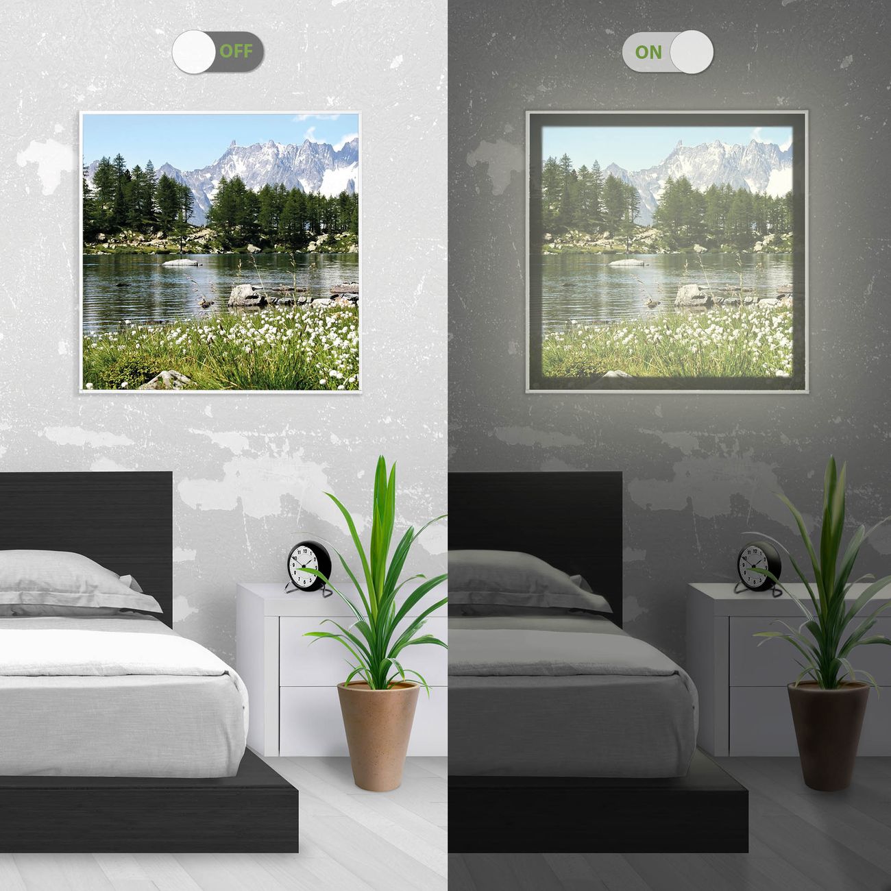 Im eingeschalteten Zustand wirft das Bild einen Schatten wie in der ersten Ansicht zu sehen.