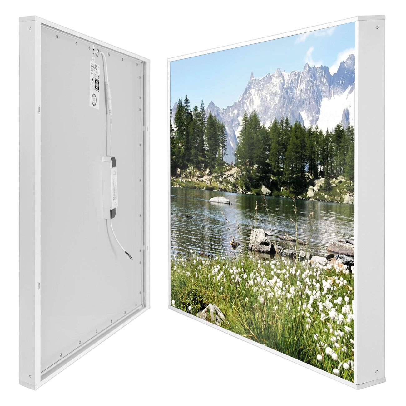 banjado LED Wandleuchte Sie erhalten hier eine stimmungsvolle Lichtquelle bestehend aus dem Set: Smart LED Panel mit Trafo, Motivscheibe (Motiv: Bergidylle) und Rahmen. Der Aufbau ist denkbar einfach, Sie erhalten eine detaillierte Aufbauanleitung. Die komplette Leuchte kann sowohl an der Wand angeschlossen werden als auch als Deckenleuchte. Die Gesamtgröße der Lampe ist 62,5 x 62,5 x 4,5cm (HxBxT). Das Set besteht aus: LED Panel mit Trafo, Rahmen und Motivbild zum Selbstaufbau.