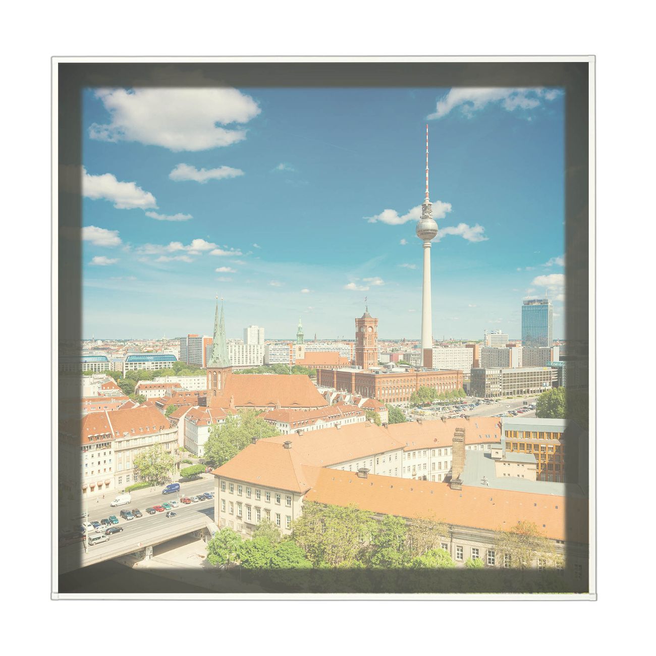 banjado LED Wandleuchte Sie erhalten hier eine stimmungsvolle Lichtquelle bestehend aus dem Set: Smart LED Panel mit Trafo, Motivscheibe (Motiv: Berlin Mitte) und Rahmen. Der Aufbau ist denkbar einfach, Sie erhalten eine detaillierte Aufbauanleitung. Die komplette Leuchte kann sowohl an der Wand angeschlossen werden als auch als Deckenleuchte. Die Gesamtgröße der Lampe ist 62,5 x 62,5 x 4,5cm (HxBxT). Das Set besteht aus: LED Panel mit Trafo, Rahmen und Motivbild zum Selbstaufbau.