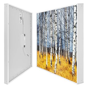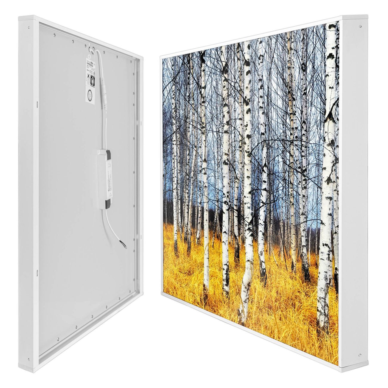 banjado LED Wandleuchte Sie erhalten hier eine stimmungsvolle Lichtquelle bestehend aus dem Set: Smart LED Panel mit Trafo, Motivscheibe (Motiv: Birkenhain) und Rahmen. Der Aufbau ist denkbar einfach, Sie erhalten eine detaillierte Aufbauanleitung. Die komplette Leuchte kann sowohl an der Wand angeschlossen werden als auch als Deckenleuchte. Die Gesamtgröße der Lampe ist 62,5 x 62,5 x 4,5cm (HxBxT). Das Set besteht aus: LED Panel mit Trafo, Rahmen und Motivbild zum Selbstaufbau.