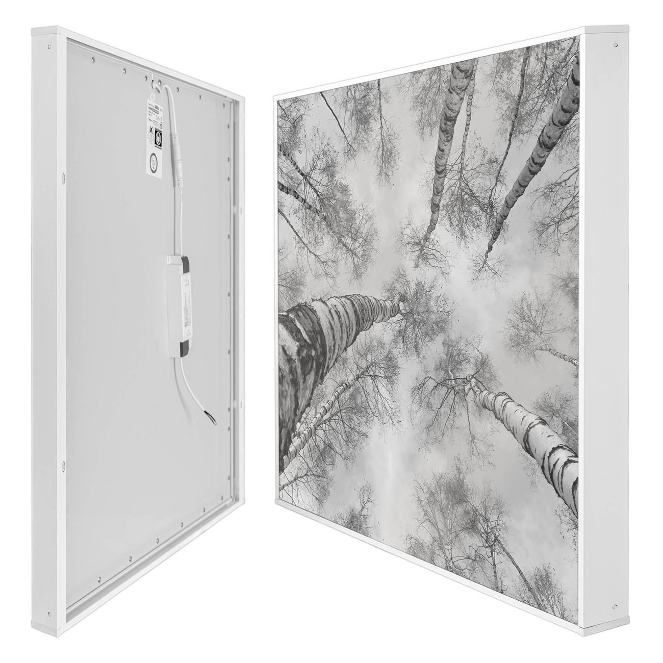 banjado LED Wandleuchte Sie erhalten hier eine stimmungsvolle Lichtquelle bestehend aus dem Set: Smart LED Panel mit Trafo, Motivscheibe (Motiv: Birkenwald) und Rahmen. Der Aufbau ist denkbar einfach, Sie erhalten eine detaillierte Aufbauanleitung. Die komplette Leuchte kann sowohl an der Wand angeschlossen werden als auch als Deckenleuchte. Die Gesamtgröße der Lampe ist 62,5 x 62,5 x 4,5cm (HxBxT). Das Set besteht aus: LED Panel mit Trafo, Rahmen und Motivbild zum Selbstaufbau.