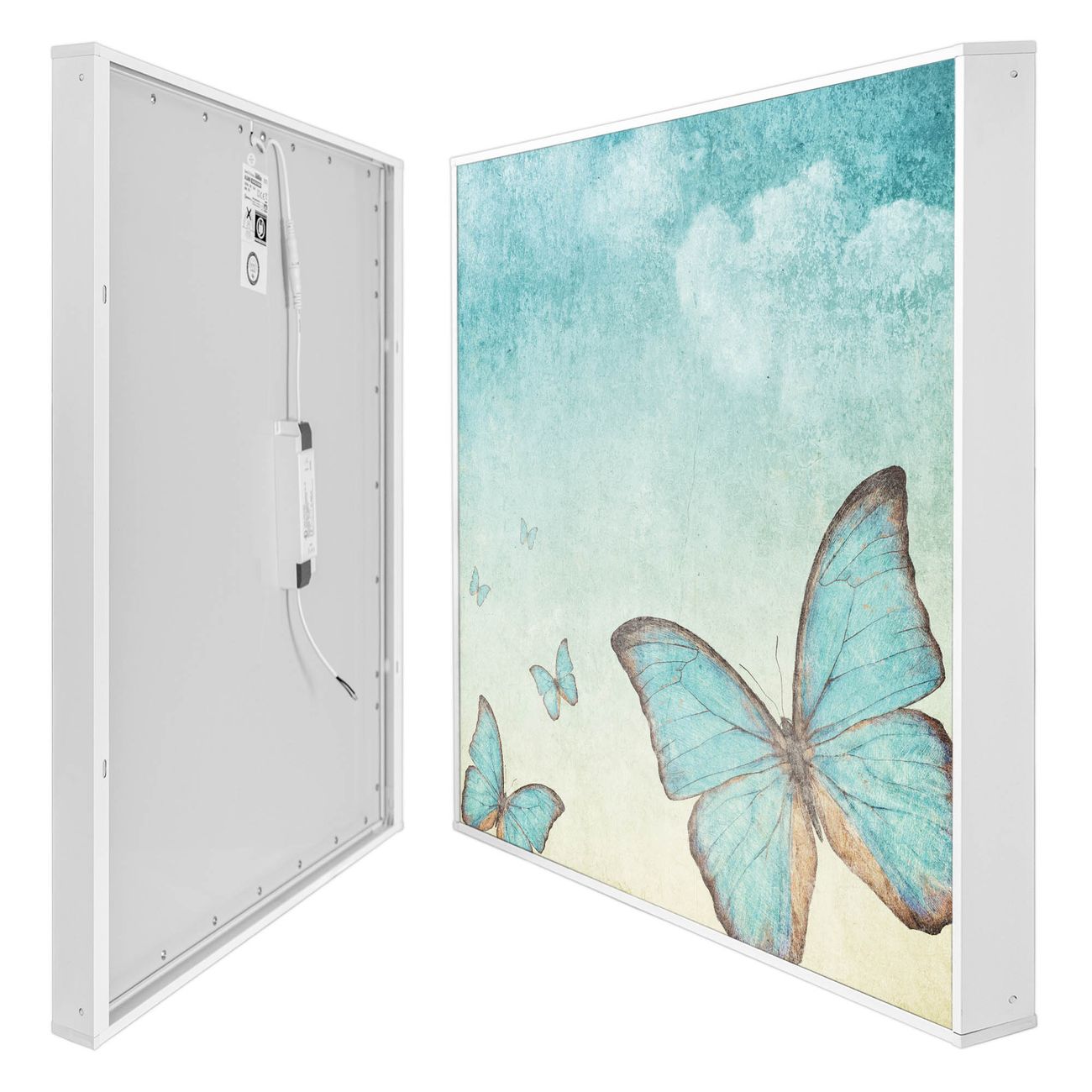 banjado LED Wandleuchte Sie erhalten hier eine stimmungsvolle Lichtquelle bestehend aus dem Set: Smart LED Panel mit Trafo, Motivscheibe (Motiv: Blaue Schmetterlinge) und Rahmen. Der Aufbau ist denkbar einfach, Sie erhalten eine detaillierte Aufbauanleitung. Die komplette Leuchte kann sowohl an der Wand angeschlossen werden als auch als Deckenleuchte. Die Gesamtgröße der Lampe ist 62,5 x 62,5 x 4,5cm (HxBxT). Das Set besteht aus: LED Panel mit Trafo, Rahmen und Motivbild zum Selbstaufbau.