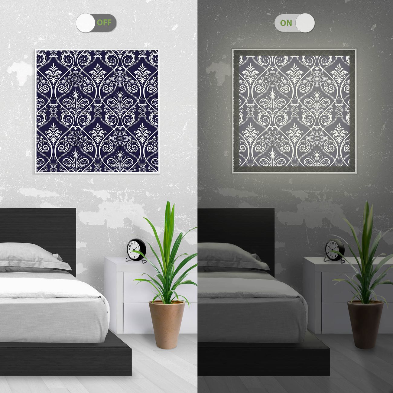 - Aussehen: Tags ein Wandbild, Nachts eine Lampe