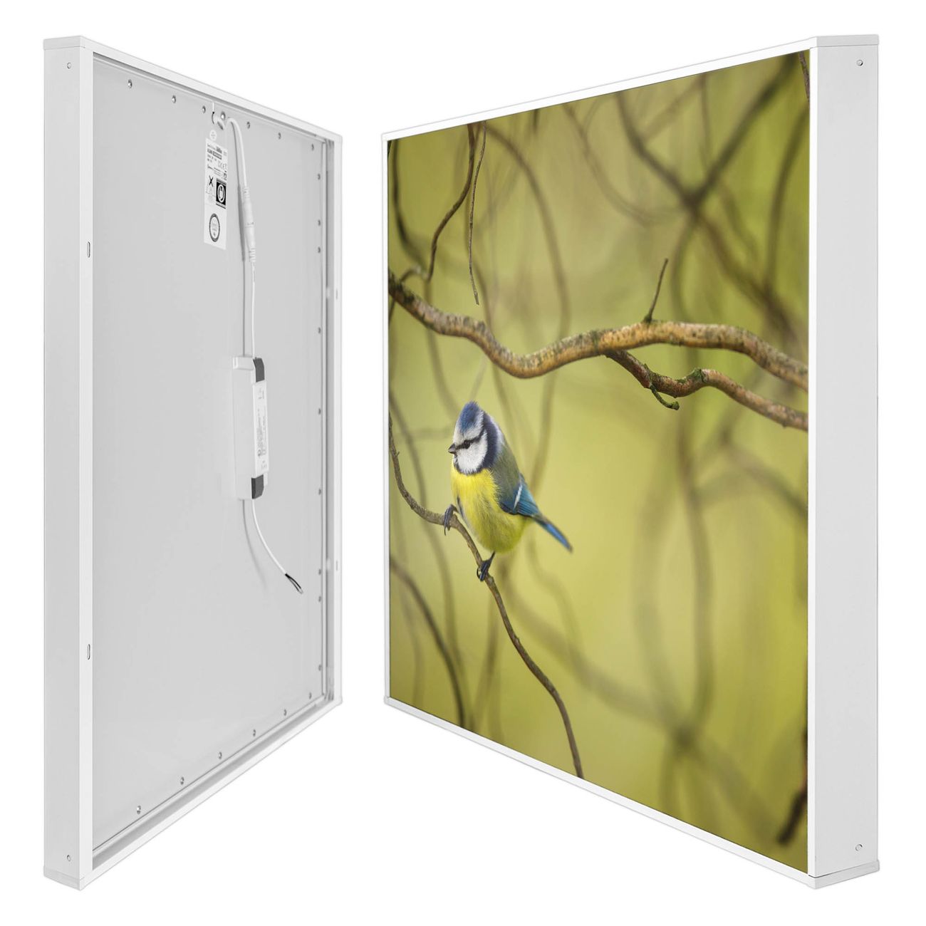 banjado LED Wandleuchte Sie erhalten hier eine stimmungsvolle Lichtquelle bestehend aus dem Set: Smart LED Panel mit Trafo, Motivscheibe (Motiv: Blaumeise im Baum) und Rahmen. Der Aufbau ist denkbar einfach, Sie erhalten eine detaillierte Aufbauanleitung. Die komplette Leuchte kann sowohl an der Wand angeschlossen werden als auch als Deckenleuchte. Die Gesamtgröße der Lampe ist 62,5 x 62,5 x 4,5cm (HxBxT). Das Set besteht aus: LED Panel mit Trafo, Rahmen und Motivbild zum Selbstaufbau.