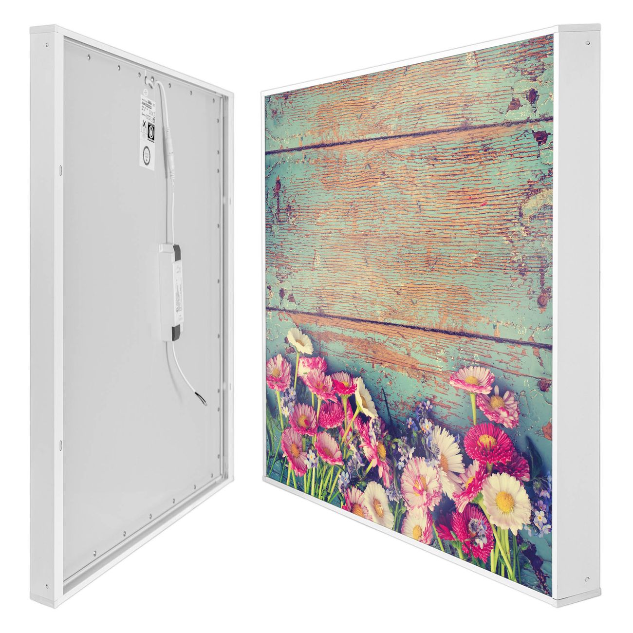 banjado LED Wandleuchte Sie erhalten hier eine stimmungsvolle Lichtquelle bestehend aus dem Set: Smart LED Panel mit Trafo, Motivscheibe (Motiv: Blumenpfücken) und Rahmen. Der Aufbau ist denkbar einfach, Sie erhalten eine detaillierte Aufbauanleitung. Die komplette Leuchte kann sowohl an der Wand angeschlossen werden als auch als Deckenleuchte. Die Gesamtgröße der Lampe ist 62,5 x 62,5 x 4,5cm (HxBxT). Das Set besteht aus: LED Panel mit Trafo, Rahmen und Motivbild zum Selbstaufbau.
