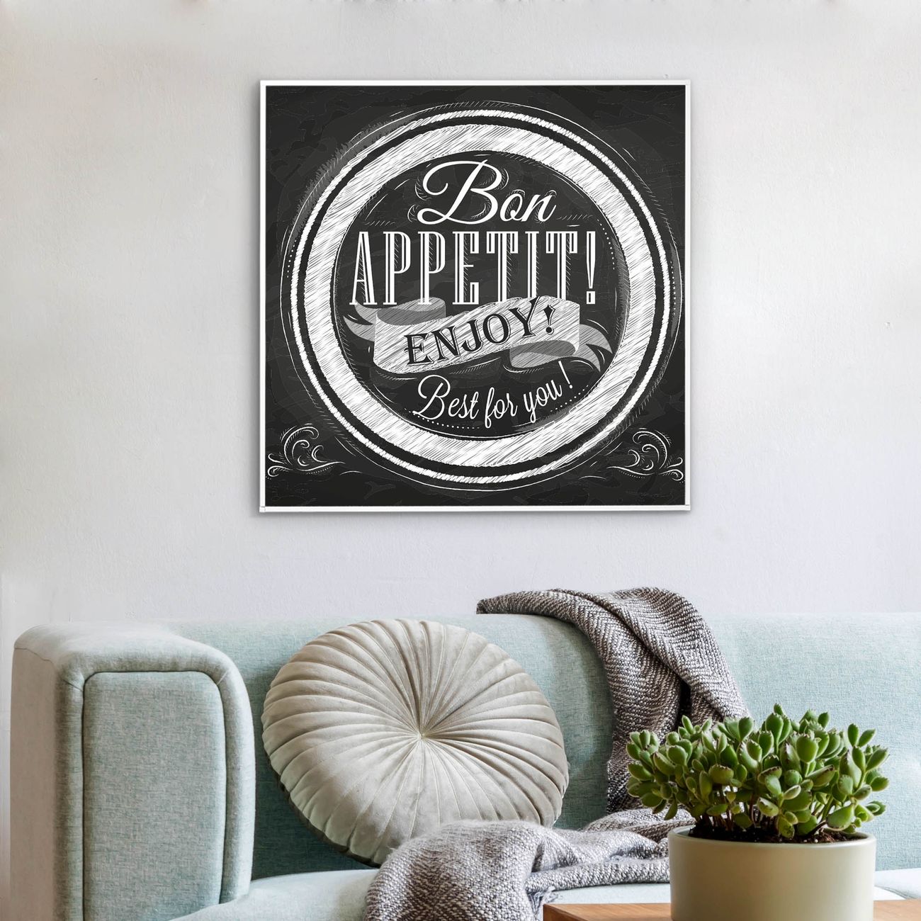 Mit der banjado smarten LED Wandleuchte mit Motiv Bon Appetit schaffen Sie in Ihren Räumen eine besondere Atmosphäre. Abends spendet die Wandlampe Licht und tagsüber haben Sie ein stimmungsvolles Wandbild. Die Leuchte besteht aus einem zeitlosen weißen Rahmen, in den das smarte WLAN LED Paneel sowie das Bild eingefasst wird. Die Montage ist denkbar einfach, Sie erhalten eine detaillierte Aufbauanleitung sowie Montagematerial. Eine angenehme Lichtquelle erhöht nachweislich das Wohlbefinden. Das Motiv der Leuchte lässt sich leicht wechseln, so können Sie Ihre Wohnräume individuell gestalten. Die Montage ist an der Wand oder an der Decke möglich.