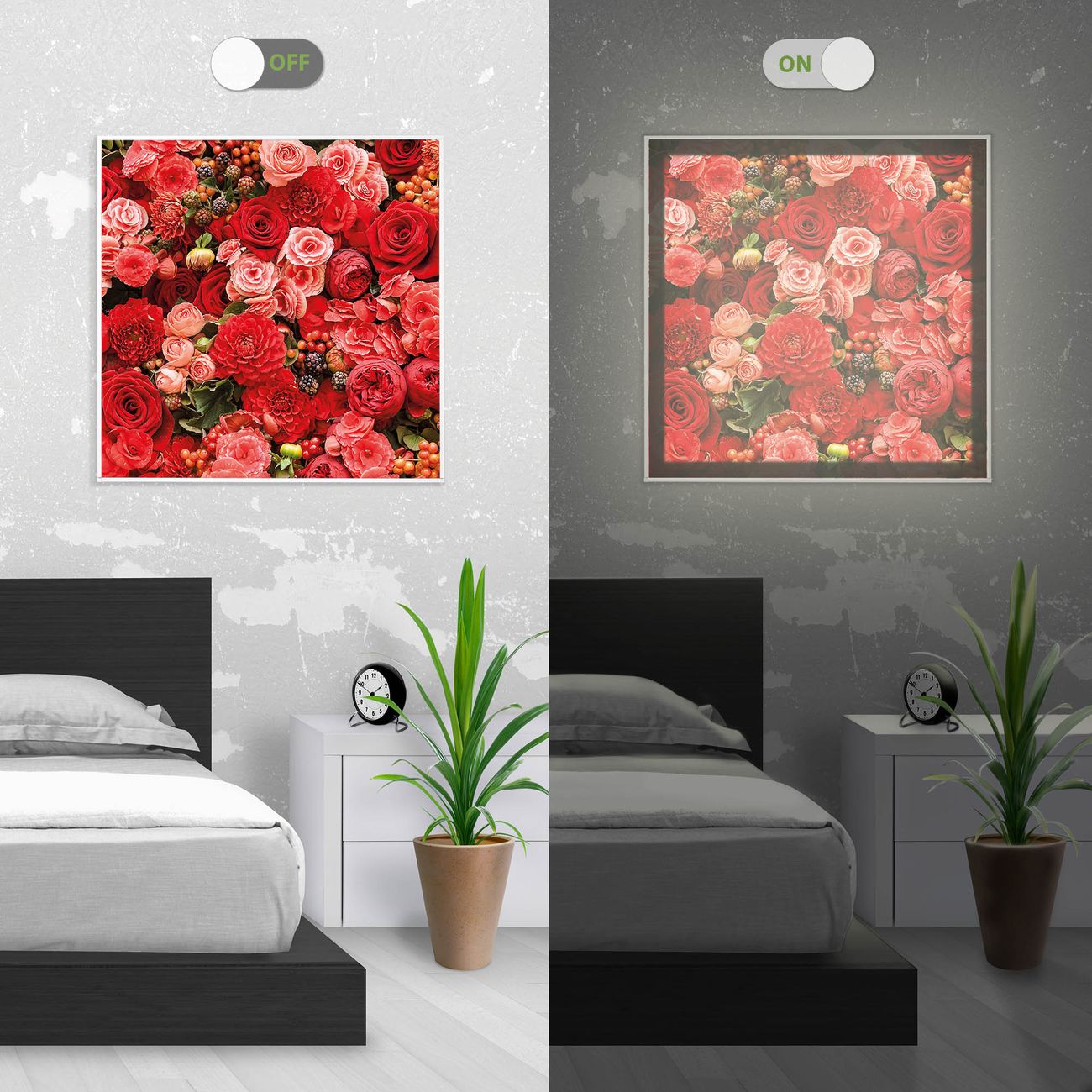 Im eingeschalteten Zustand wirft das Bild einen Schatten wie in der ersten Ansicht zu sehen.