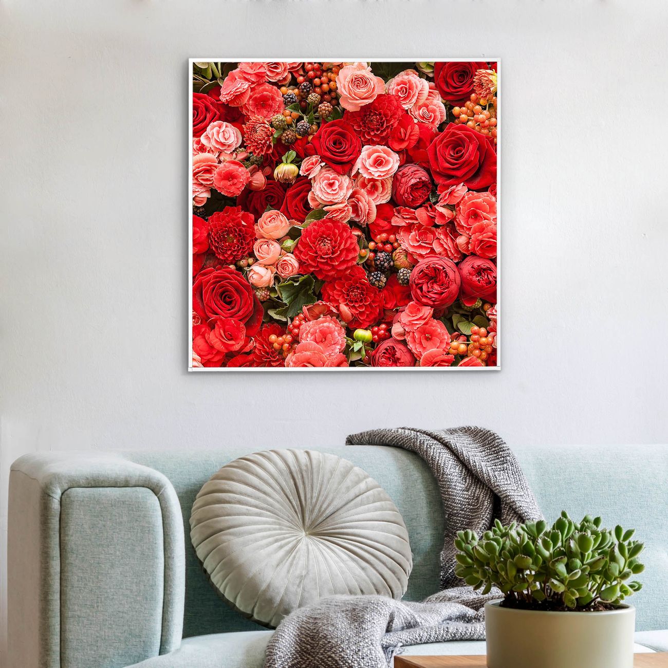 Mit der banjado smarten LED Wandleuchte mit Motiv Bouquet in Rot schaffen Sie in Ihren Räumen eine besondere Atmosphäre. Abends spendet die Wandlampe Licht und tagsüber haben Sie ein stimmungsvolles Wandbild. Die Leuchte besteht aus einem zeitlosen weißen Rahmen, in den das smarte WLAN LED Paneel sowie das Bild eingefasst wird. Die Montage ist denkbar einfach, Sie erhalten eine detaillierte Aufbauanleitung sowie Montagematerial. Eine angenehme Lichtquelle erhöht nachweislich das Wohlbefinden. Das Motiv der Leuchte lässt sich leicht wechseln, so können Sie Ihre Wohnräume individuell gestalten. Die Montage ist an der Wand oder an der Decke möglich.