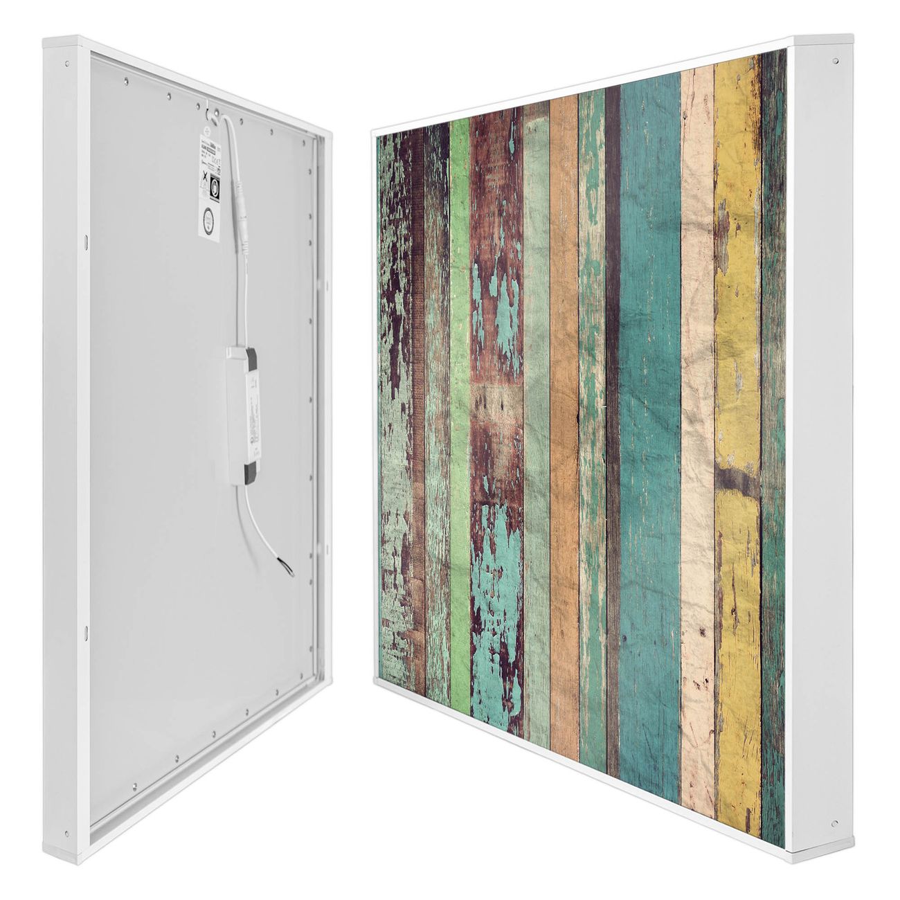 banjado LED Wandleuchte Sie erhalten hier eine stimmungsvolle Lichtquelle bestehend aus dem Set: Smart LED Panel mit Trafo, Motivscheibe (Motiv: Bunte Bretterwand) und Rahmen. Der Aufbau ist denkbar einfach, Sie erhalten eine detaillierte Aufbauanleitung. Die komplette Leuchte kann sowohl an der Wand angeschlossen werden als auch als Deckenleuchte. Die Gesamtgröße der Lampe ist 62,5 x 62,5 x 4,5cm (HxBxT). Das Set besteht aus: LED Panel mit Trafo, Rahmen und Motivbild zum Selbstaufbau.