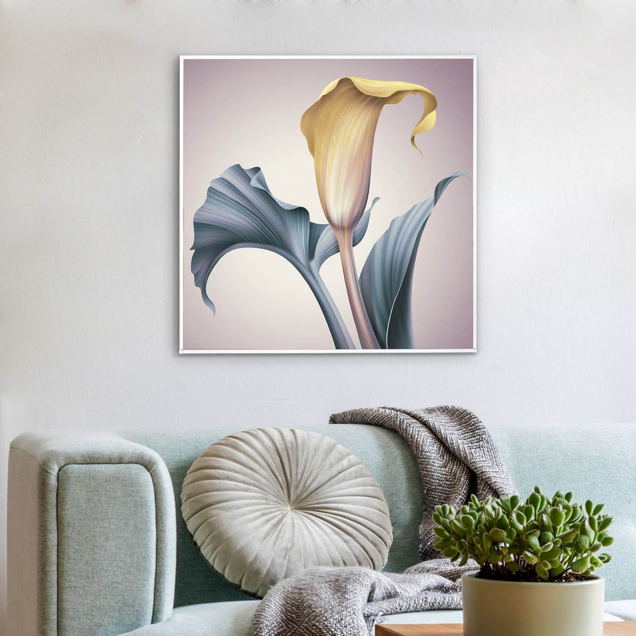 Mit der banjado smarten LED Wandleuchte mit Motiv Calla schaffen Sie in Ihren Räumen eine besondere Atmosphäre. Abends spendet die Wandlampe Licht und tagsüber haben Sie ein stimmungsvolles Wandbild. Die Leuchte besteht aus einem zeitlosen weißen Rahmen, in den das smarte WLAN LED Paneel sowie das Bild eingefasst wird. Die Montage ist denkbar einfach, Sie erhalten eine detaillierte Aufbauanleitung sowie Montagematerial. Eine angenehme Lichtquelle erhöht nachweislich das Wohlbefinden. Das Motiv der Leuchte lässt sich leicht wechseln, so können Sie Ihre Wohnräume individuell gestalten. Die Montage ist an der Wand oder an der Decke möglich.