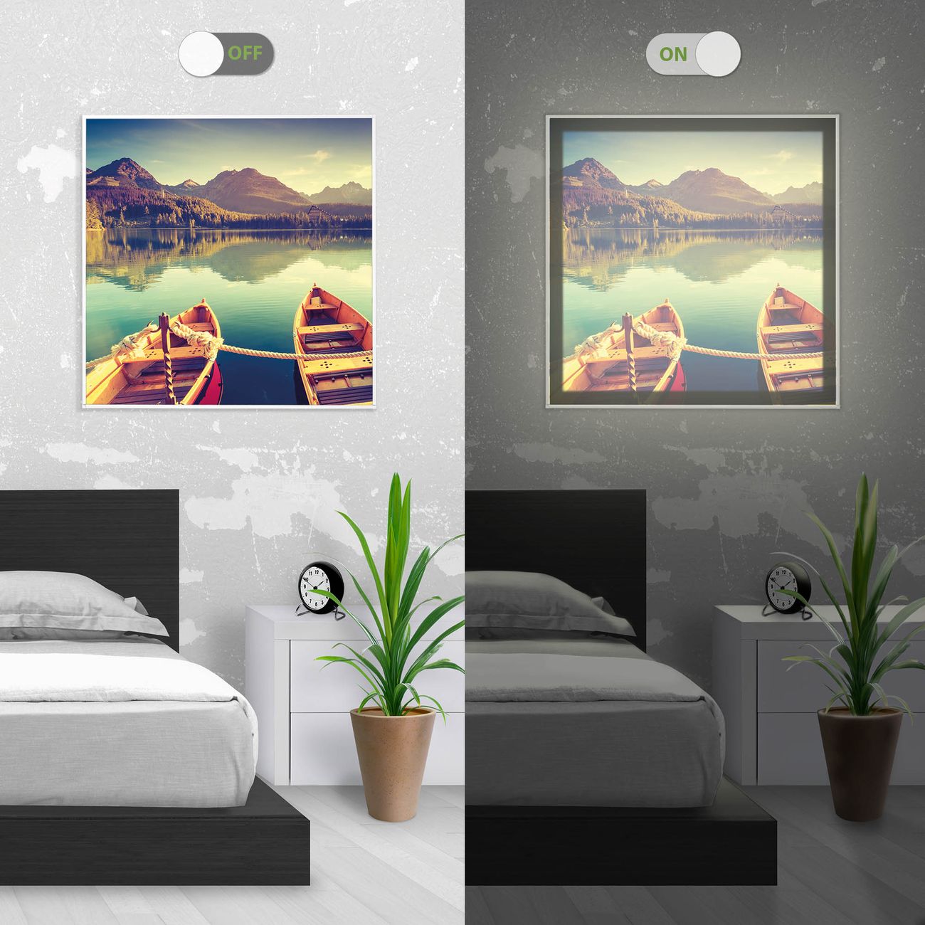 - Aussehen: Tags ein Wandbild, Nachts eine Lampe