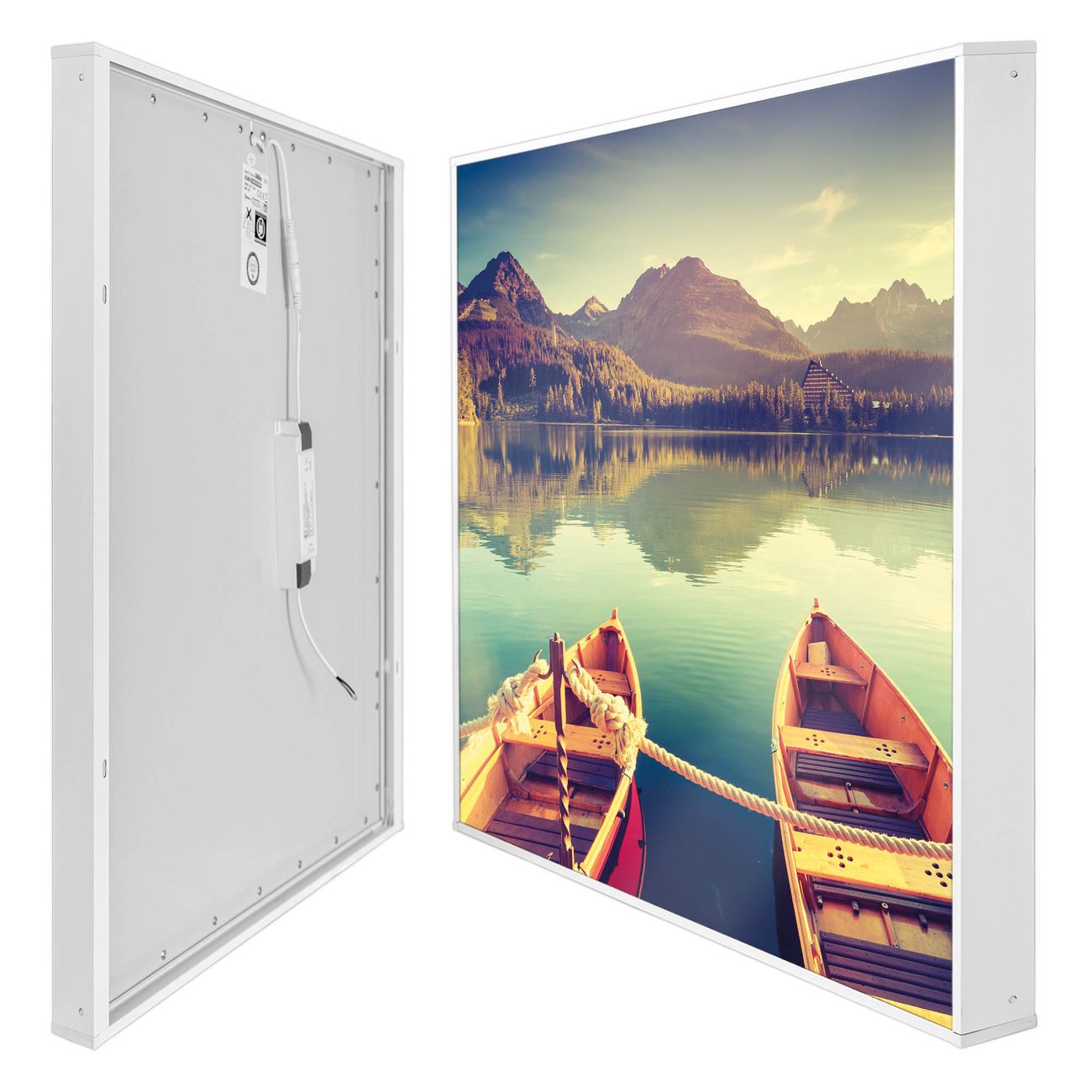 banjado LED Wandleuchte Sie erhalten hier eine stimmungsvolle Lichtquelle bestehend aus dem Set: Smart LED Panel mit Trafo, Motivscheibe (Motiv: Drei Boote Am Steg) und Rahmen. Der Aufbau ist denkbar einfach, Sie erhalten eine detaillierte Aufbauanleitung. Die komplette Leuchte kann sowohl an der Wand angeschlossen werden als auch als Deckenleuchte. Die Gesamtgröße der Lampe ist 62,5 x 62,5 x 4,5cm (HxBxT). Das Set besteht aus: LED Panel mit Trafo, Rahmen und Motivbild zum Selbstaufbau.
