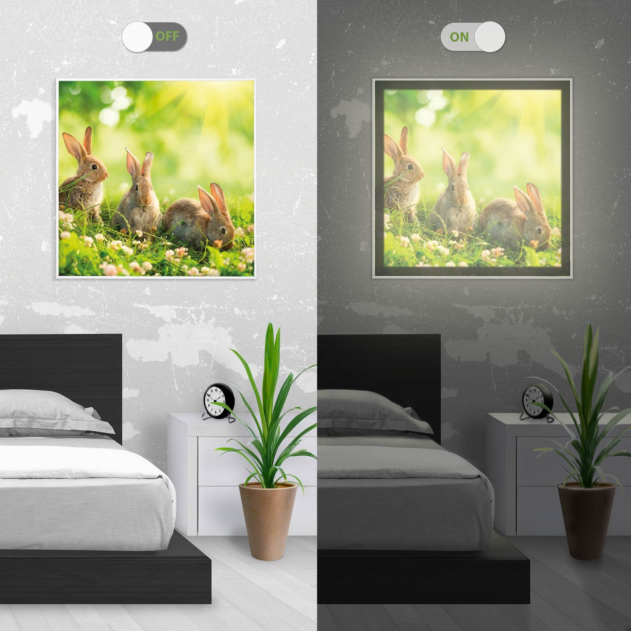 banjado Licht Bild LED Lampe Smart Home Motiv Drei Hasen