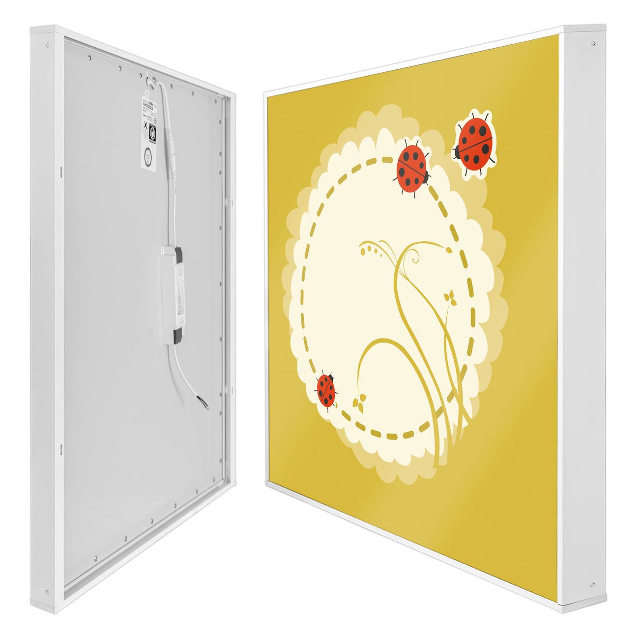 banjado LED Wandleuchte Sie erhalten hier eine stimmungsvolle Lichtquelle bestehend aus dem Set: Smart LED Panel mit Trafo, Motivscheibe (Motiv: Drei Marienkäfer) und Rahmen. Der Aufbau ist denkbar einfach, Sie erhalten eine detaillierte Aufbauanleitung. Die komplette Leuchte kann sowohl an der Wand angeschlossen werden als auch als Deckenleuchte. Die Gesamtgröße der Lampe ist 62,5 x 62,5 x 4,5cm (HxBxT). Das Set besteht aus: LED Panel mit Trafo, Rahmen und Motivbild zum Selbstaufbau.
