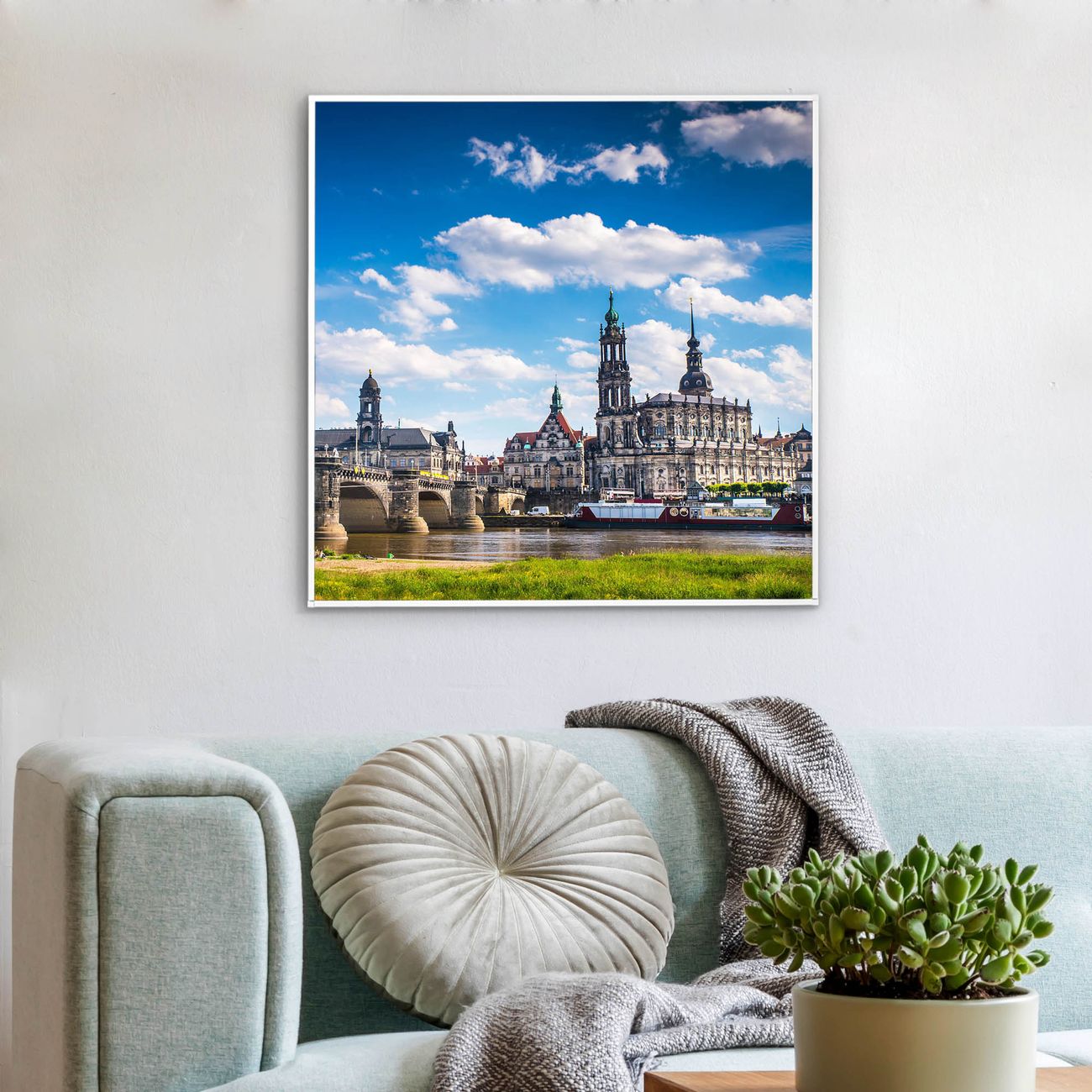 banjado LED Wandleuchte Sie erhalten hier eine stimmungsvolle Lichtquelle bestehend aus dem Set: Smart LED Panel mit Trafo, Motivscheibe (Motiv: Elbflorenz) und Rahmen. Der Aufbau ist denkbar einfach, Sie erhalten eine detaillierte Aufbauanleitung. Die komplette Leuchte kann sowohl an der Wand angeschlossen werden als auch als Deckenleuchte. Die Gesamtgröße der Lampe ist 62,5 x 62,5 x 4,5cm (HxBxT). Das Set besteht aus: LED Panel mit Trafo, Rahmen und Motivbild zum Selbstaufbau.