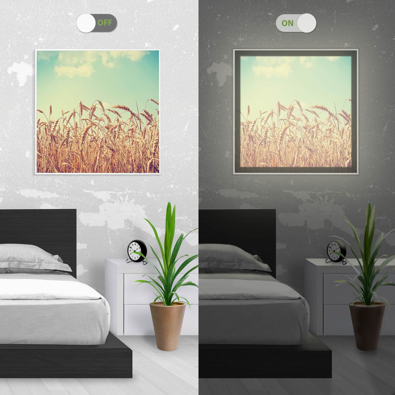 - Aussehen: Tags ein Wandbild, Nachts eine Lampe