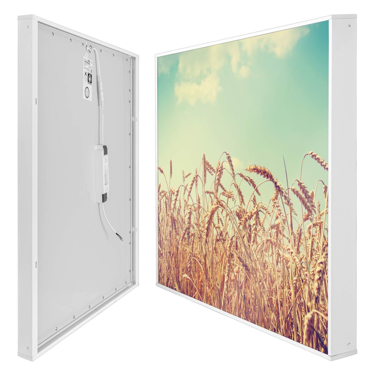 banjado LED Wandleuchte Sie erhalten hier eine stimmungsvolle Lichtquelle bestehend aus dem Set: Smart LED Panel mit Trafo, Motivscheibe (Motiv: Erntezeit) und Rahmen. Der Aufbau ist denkbar einfach, Sie erhalten eine detaillierte Aufbauanleitung. Die komplette Leuchte kann sowohl an der Wand angeschlossen werden als auch als Deckenleuchte. Die Gesamtgröße der Lampe ist 62,5 x 62,5 x 4,5cm (HxBxT). Das Set besteht aus: LED Panel mit Trafo, Rahmen und Motivbild zum Selbstaufbau.