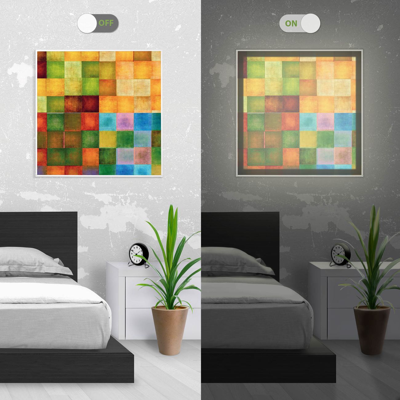 - Aussehen: Tags ein Wandbild, Nachts eine Lampe