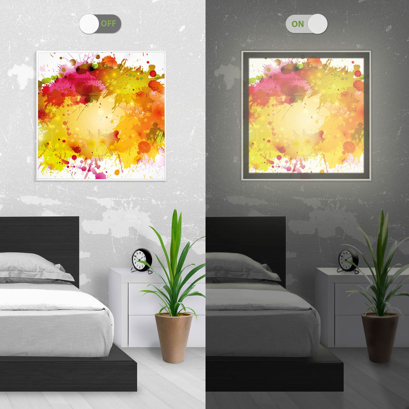 - Aussehen: Tags ein Wandbild, Nachts eine Lampe