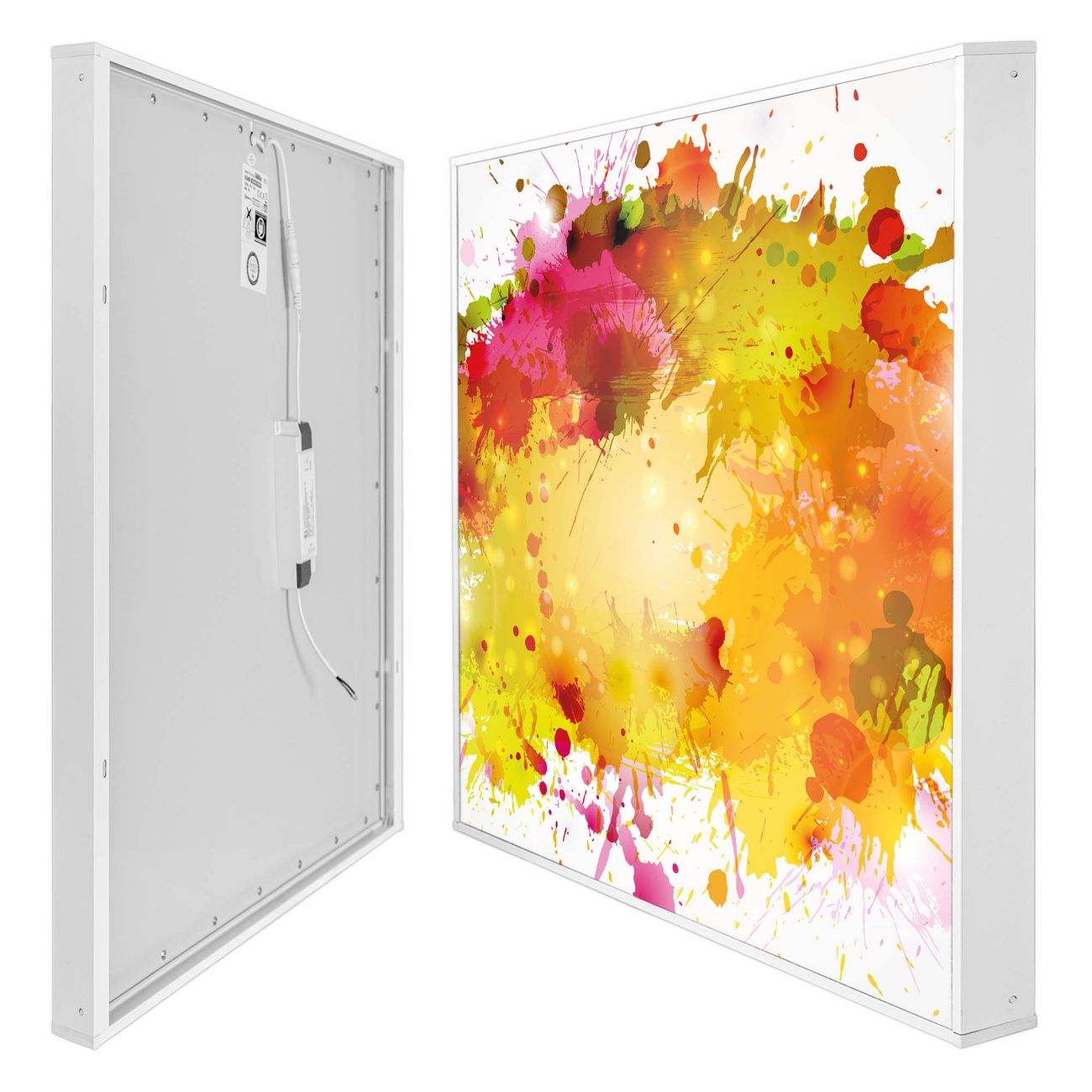 banjado LED Wandleuchte Sie erhalten hier eine stimmungsvolle Lichtquelle bestehend aus dem Set: Smart LED Panel mit Trafo, Motivscheibe (Motiv: Farbkleckse) und Rahmen. Der Aufbau ist denkbar einfach, Sie erhalten eine detaillierte Aufbauanleitung. Die komplette Leuchte kann sowohl an der Wand angeschlossen werden als auch als Deckenleuchte. Die Gesamtgröße der Lampe ist 62,5 x 62,5 x 4,5cm (HxBxT). Das Set besteht aus: LED Panel mit Trafo, Rahmen und Motivbild zum Selbstaufbau.