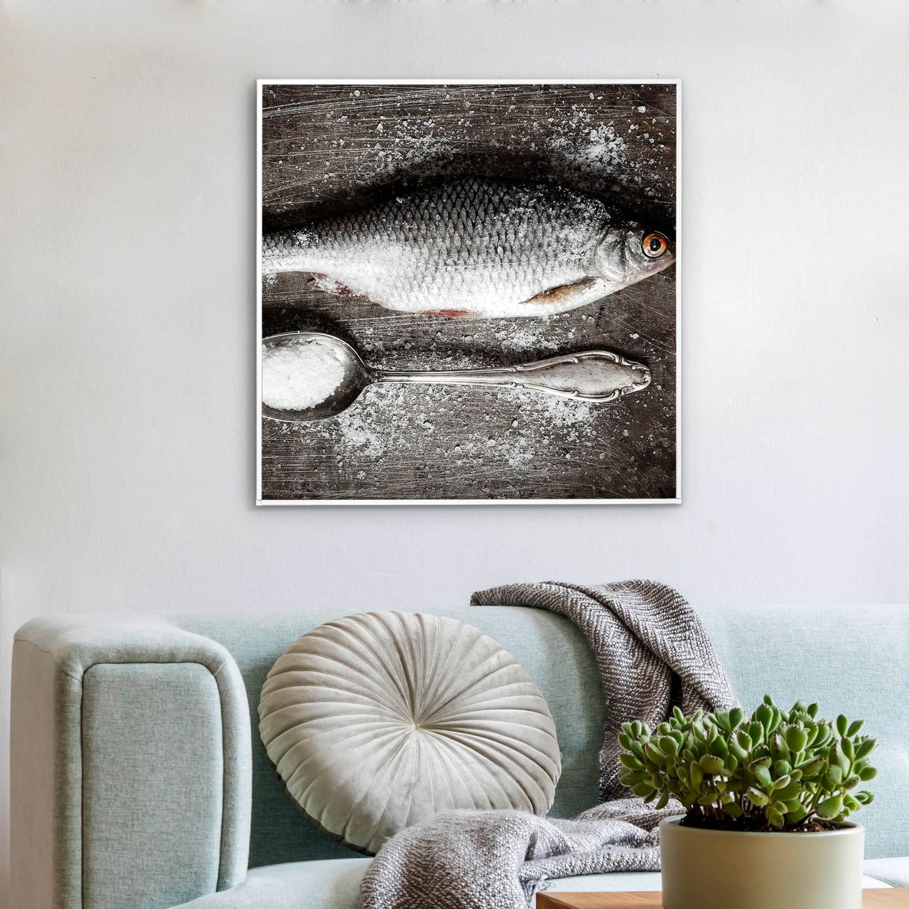 Mit der banjado smarten LED Wandleuchte mit Motiv Fisch Und Salz schaffen Sie in Ihren Räumen eine besondere Atmosphäre. Abends spendet die Wandlampe Licht und tagsüber haben Sie ein stimmungsvolles Wandbild. Die Leuchte besteht aus einem zeitlosen weißen Rahmen, in den das smarte WLAN LED Paneel sowie das Bild eingefasst wird. Die Montage ist denkbar einfach, Sie erhalten eine detaillierte Aufbauanleitung sowie Montagematerial. Eine angenehme Lichtquelle erhöht nachweislich das Wohlbefinden. Das Motiv der Leuchte lässt sich leicht wechseln, so können Sie Ihre Wohnräume individuell gestalten. Die Montage ist an der Wand oder an der Decke möglich.