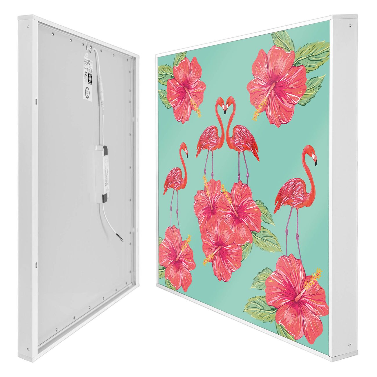 banjado LED Wandleuchte Sie erhalten hier eine stimmungsvolle Lichtquelle bestehend aus dem Set: Smart LED Panel mit Trafo, Motivscheibe (Motiv: Flamingo Liebe) und Rahmen. Der Aufbau ist denkbar einfach, Sie erhalten eine detaillierte Aufbauanleitung. Die komplette Leuchte kann sowohl an der Wand angeschlossen werden als auch als Deckenleuchte. Die Gesamtgröße der Lampe ist 62,5 x 62,5 x 4,5cm (HxBxT). Das Set besteht aus: LED Panel mit Trafo, Rahmen und Motivbild zum Selbstaufbau.