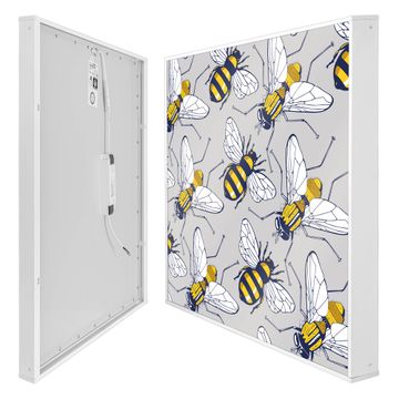 banjado LED Wandleuchte Sie erhalten hier eine stimmungsvolle Lichtquelle bestehend aus dem Set: Smart LED Panel mit Trafo, Motivscheibe (Motiv: Fliegen und Bienen) und Rahmen. Der Aufbau ist denkbar einfach, Sie erhalten eine detaillierte Aufbauanleitung. Die komplette Leuchte kann sowohl an der Wand angeschlossen werden als auch als Deckenleuchte. Die Gesamtgröße der Lampe ist 62,5 x 62,5 x 4,5cm (HxBxT). Das Set besteht aus: LED Panel mit Trafo, Rahmen und Motivbild zum Selbstaufbau.