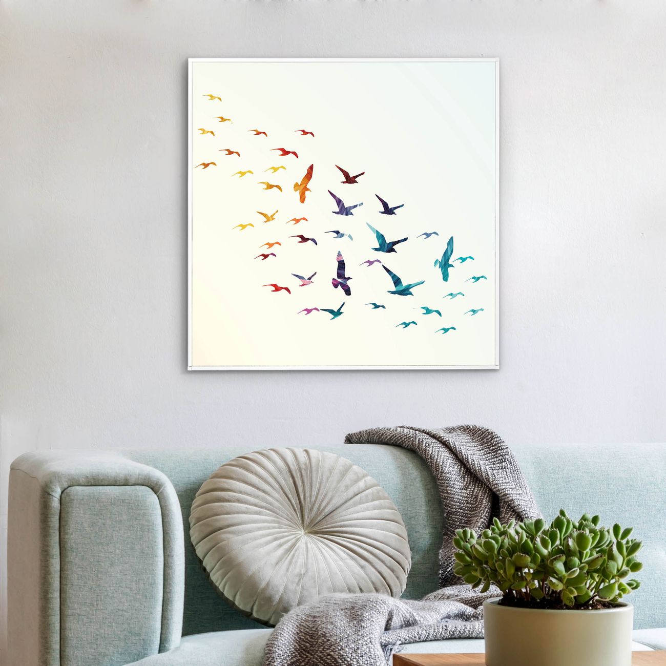 Mit der banjado smarten LED Wandleuchte mit Motiv Fliegende Vögel schaffen Sie in Ihren Räumen eine besondere Atmosphäre. Abends spendet die Wandlampe Licht und tagsüber haben Sie ein stimmungsvolles Wandbild. Die Leuchte besteht aus einem zeitlosen weißen Rahmen, in den das smarte WLAN LED Paneel sowie das Bild eingefasst wird. Die Montage ist denkbar einfach, Sie erhalten eine detaillierte Aufbauanleitung sowie Montagematerial. Eine angenehme Lichtquelle erhöht nachweislich das Wohlbefinden. Das Motiv der Leuchte lässt sich leicht wechseln, so können Sie Ihre Wohnräume individuell gestalten. Die Montage ist an der Wand oder an der Decke möglich.