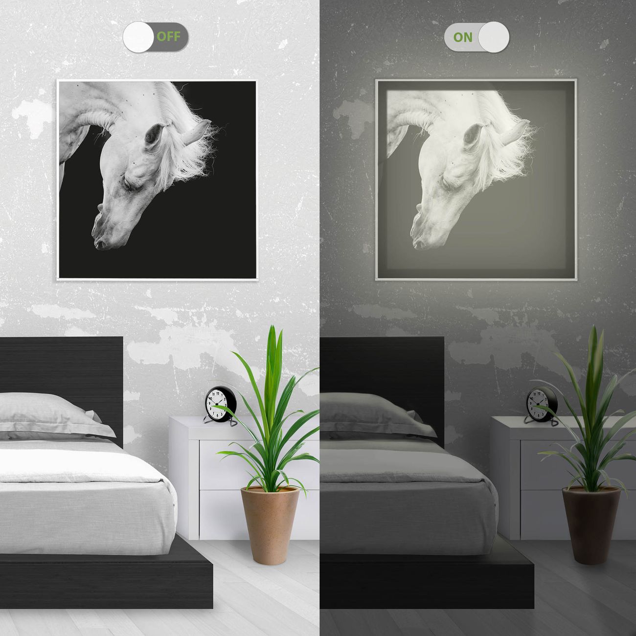 Im eingeschalteten Zustand wirft das Bild einen Schatten wie in der ersten Ansicht zu sehen.